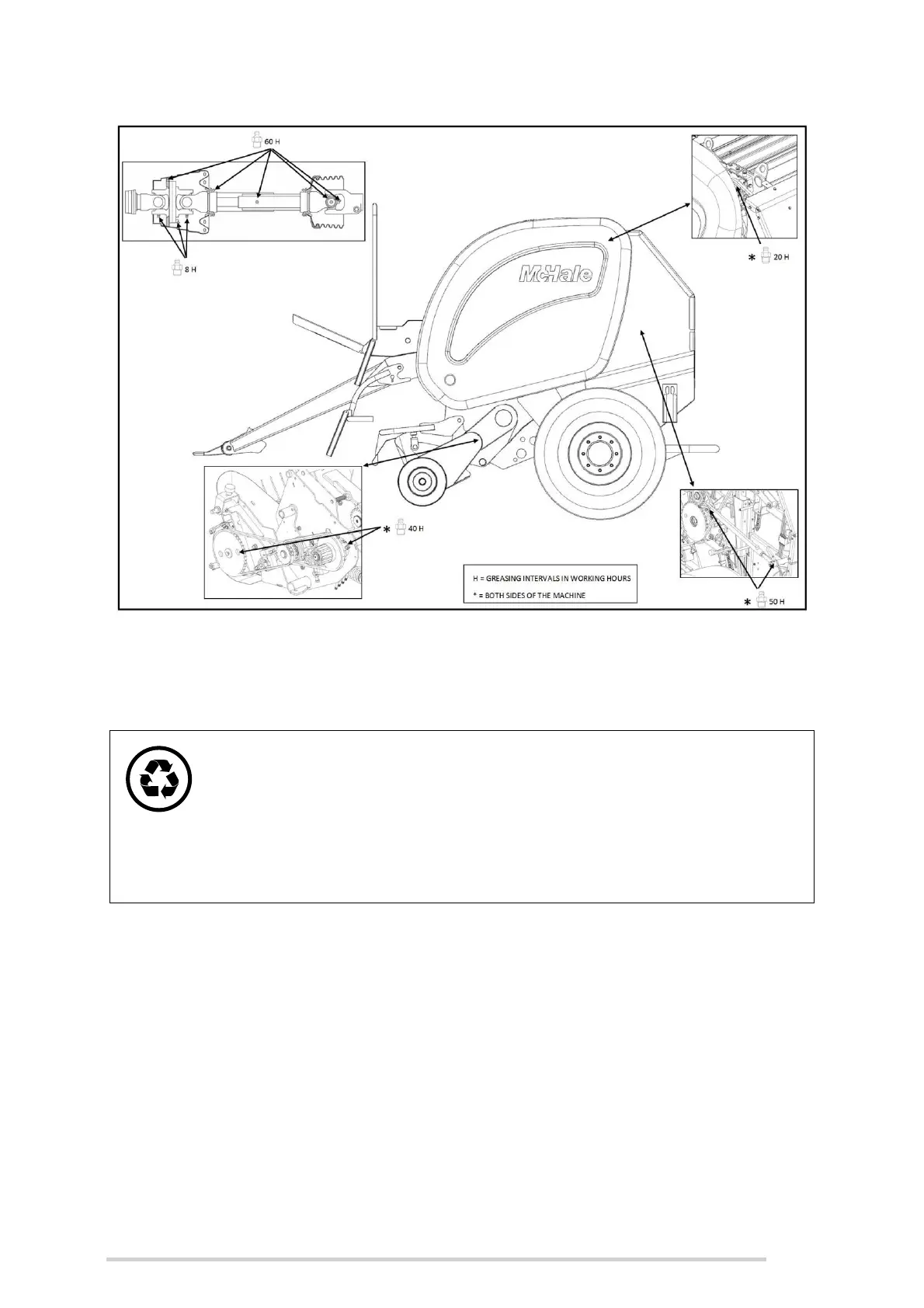 Additional greasing needs to be carried out as shown. This decal is mounted inside the