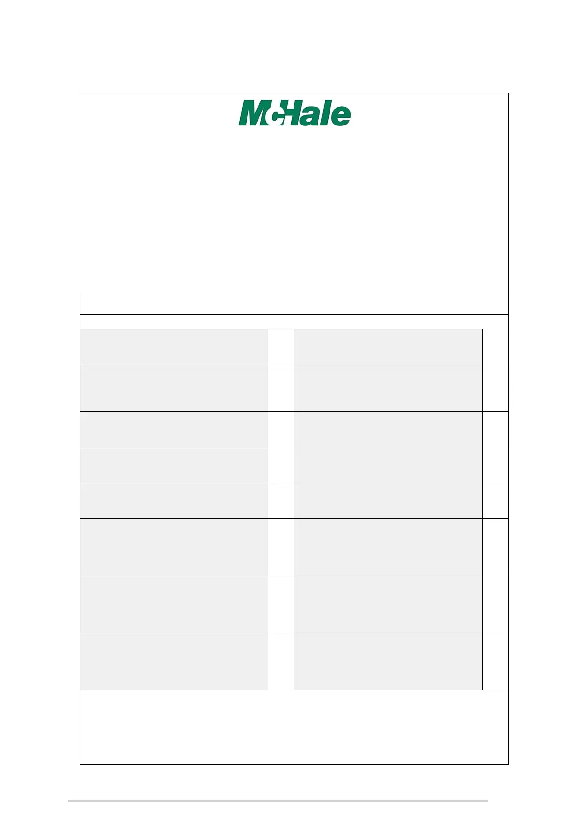 This machine must be registered on www.mchale.net by the dealer in order to qualify for warranty!