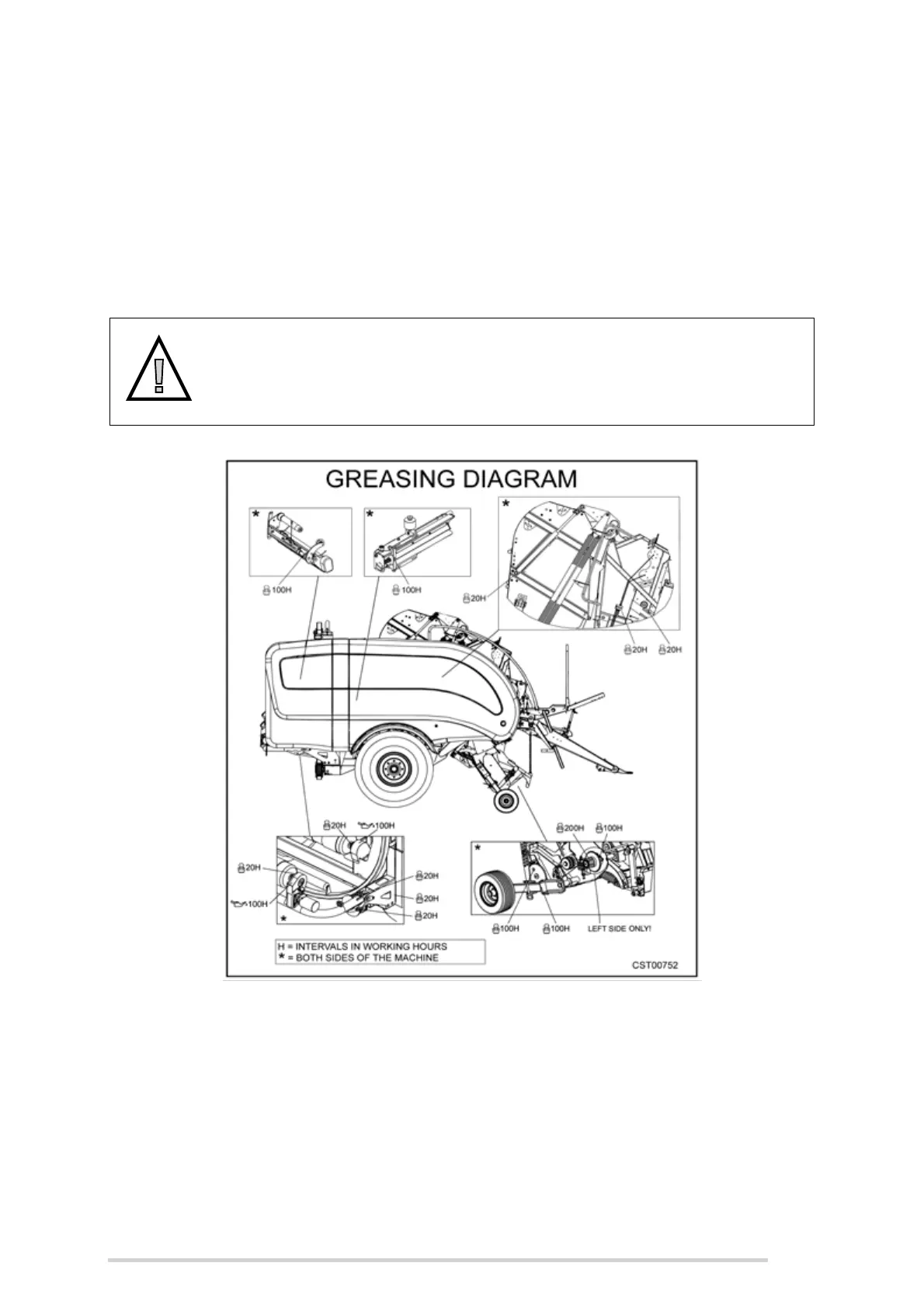 Additional greasing needs to be carried out as shown. This decal is mounted inside the