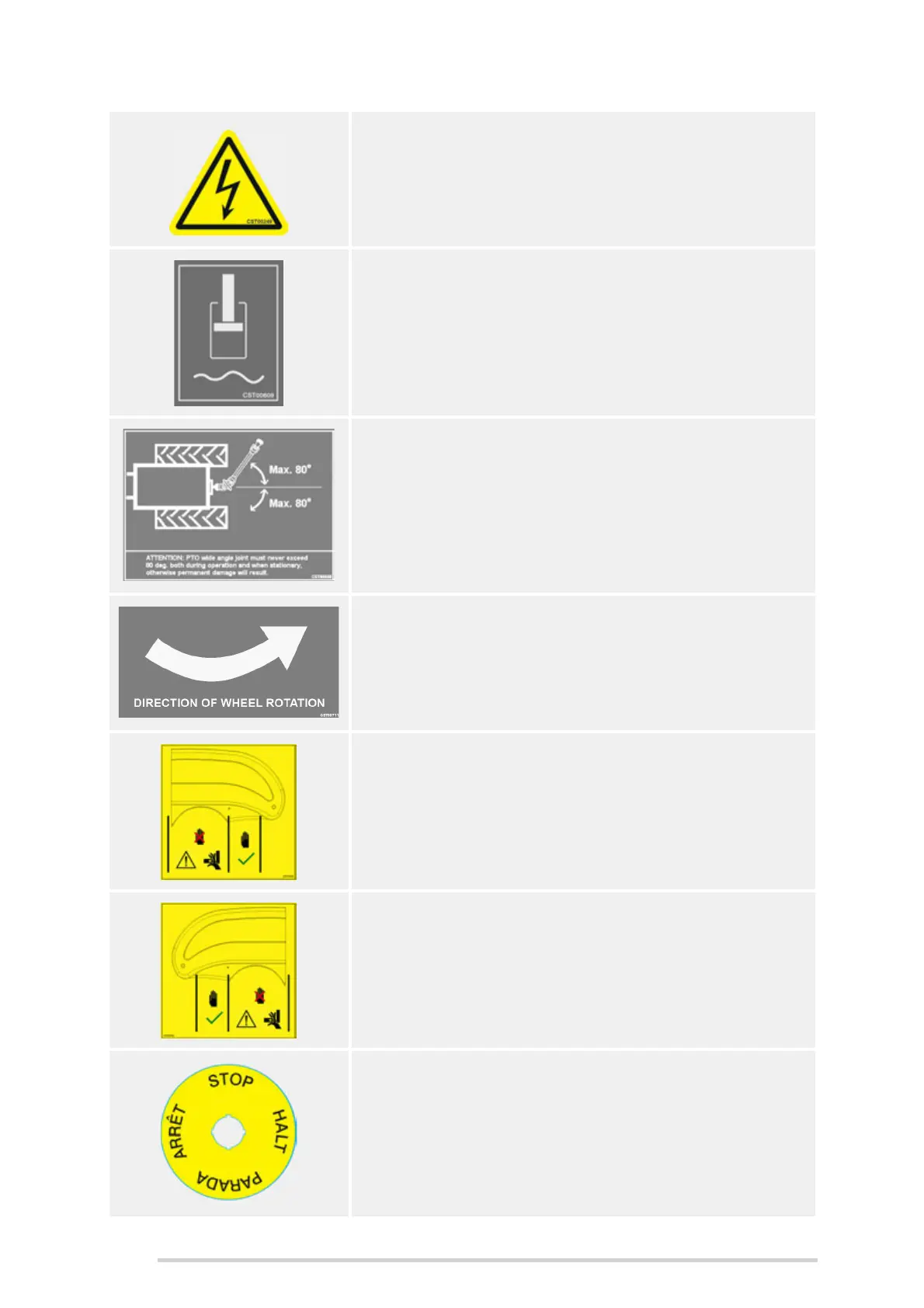 The PTO wide angle joint must never exceed 80