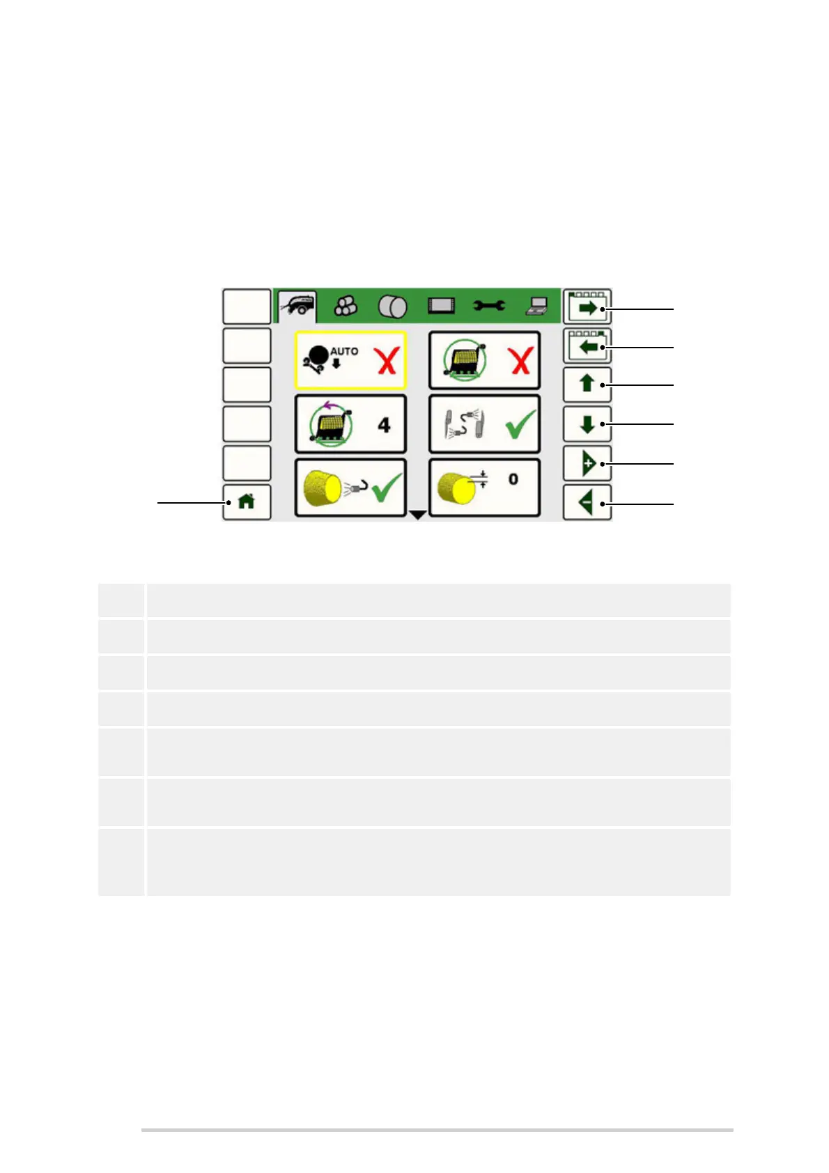 The main menu is displayed as a series of 6 tabs, with the first tab selected i.e. machine