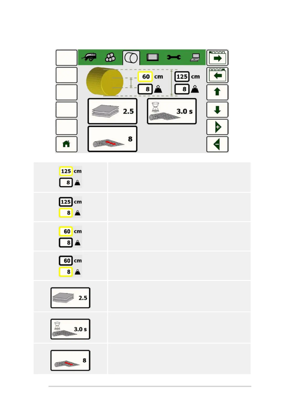 The bale density can be set from 1 to 10.