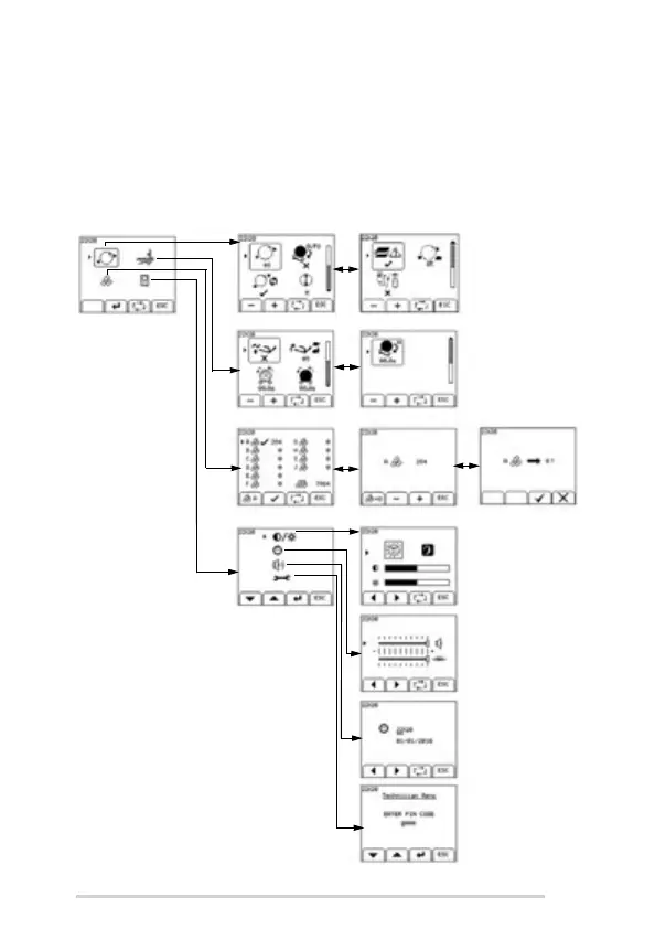 Below is a navigation map for the menu layout. Detailed descriptions of each setting’s