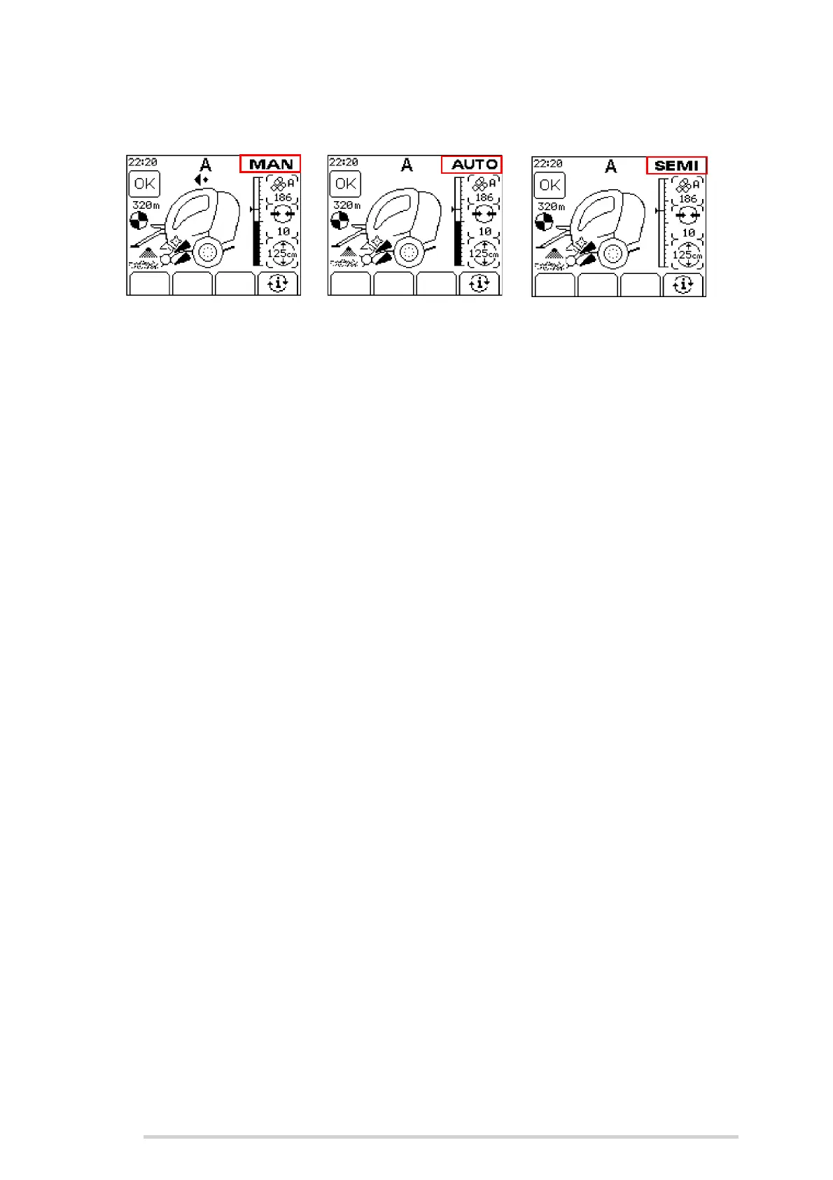The machine has three operating modes; manual (MAN), automatic (AUTO) and semi