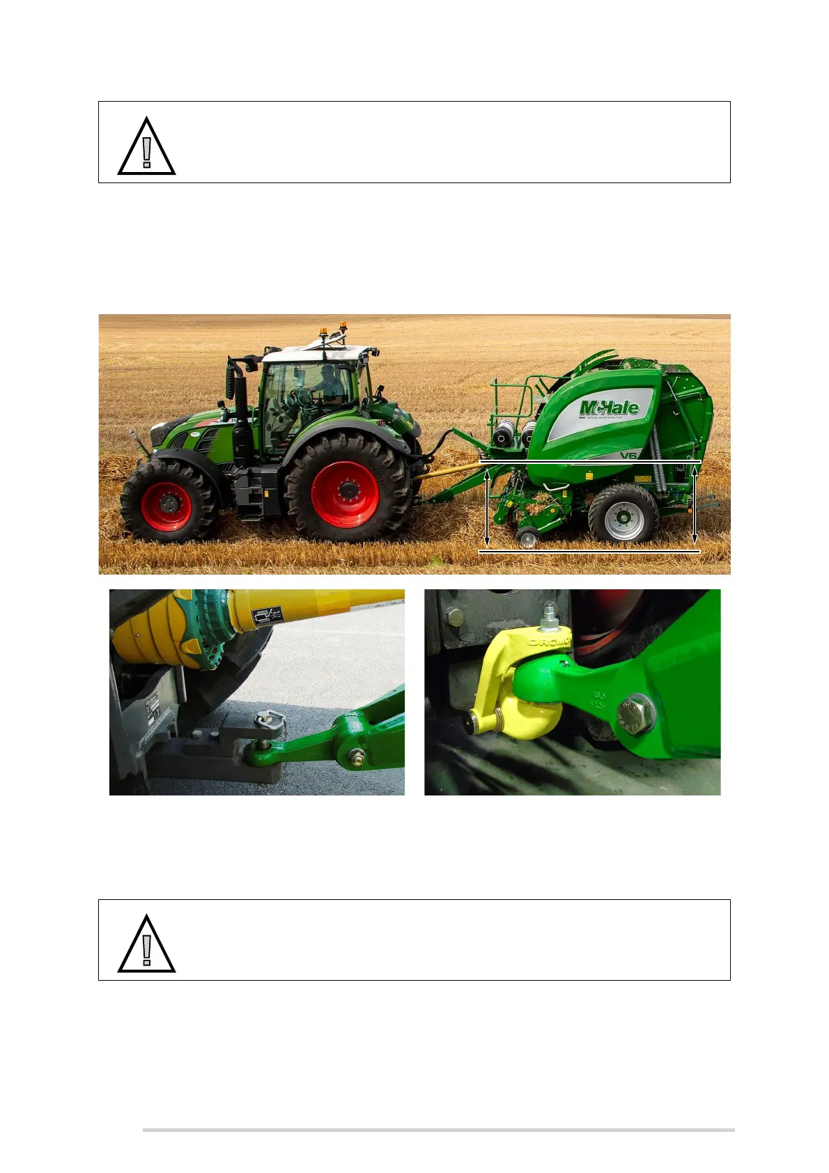 CAUTION: Tractor drawbar and coupling device must be compatible