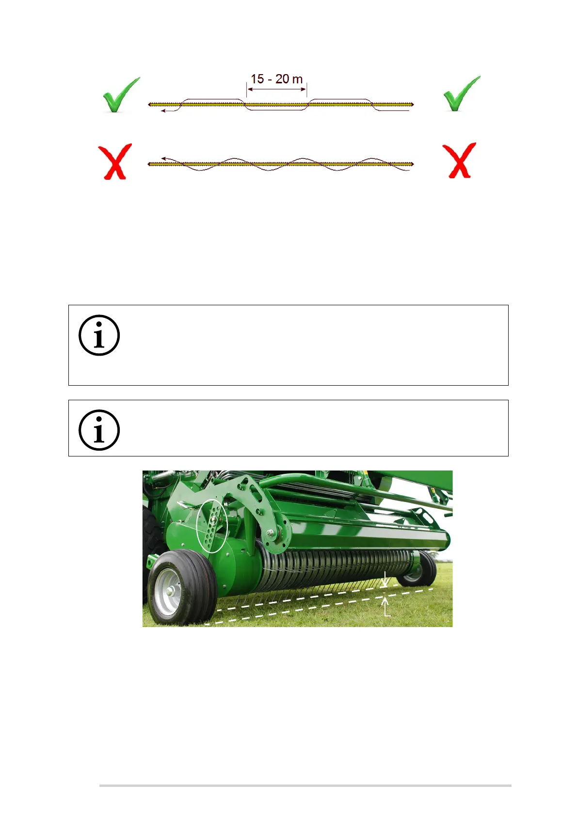 and at the optimum working height with the pick-up tines being 2 cm above the ground.