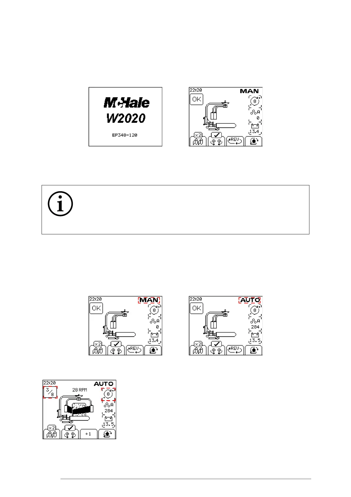 The machine has two operating modes; manual (MAN) or automatic (AUTO).
