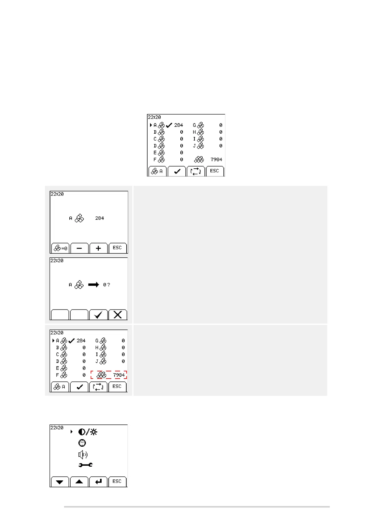 This menu allows the user to manage bale counters. The toggle key (button C) can be