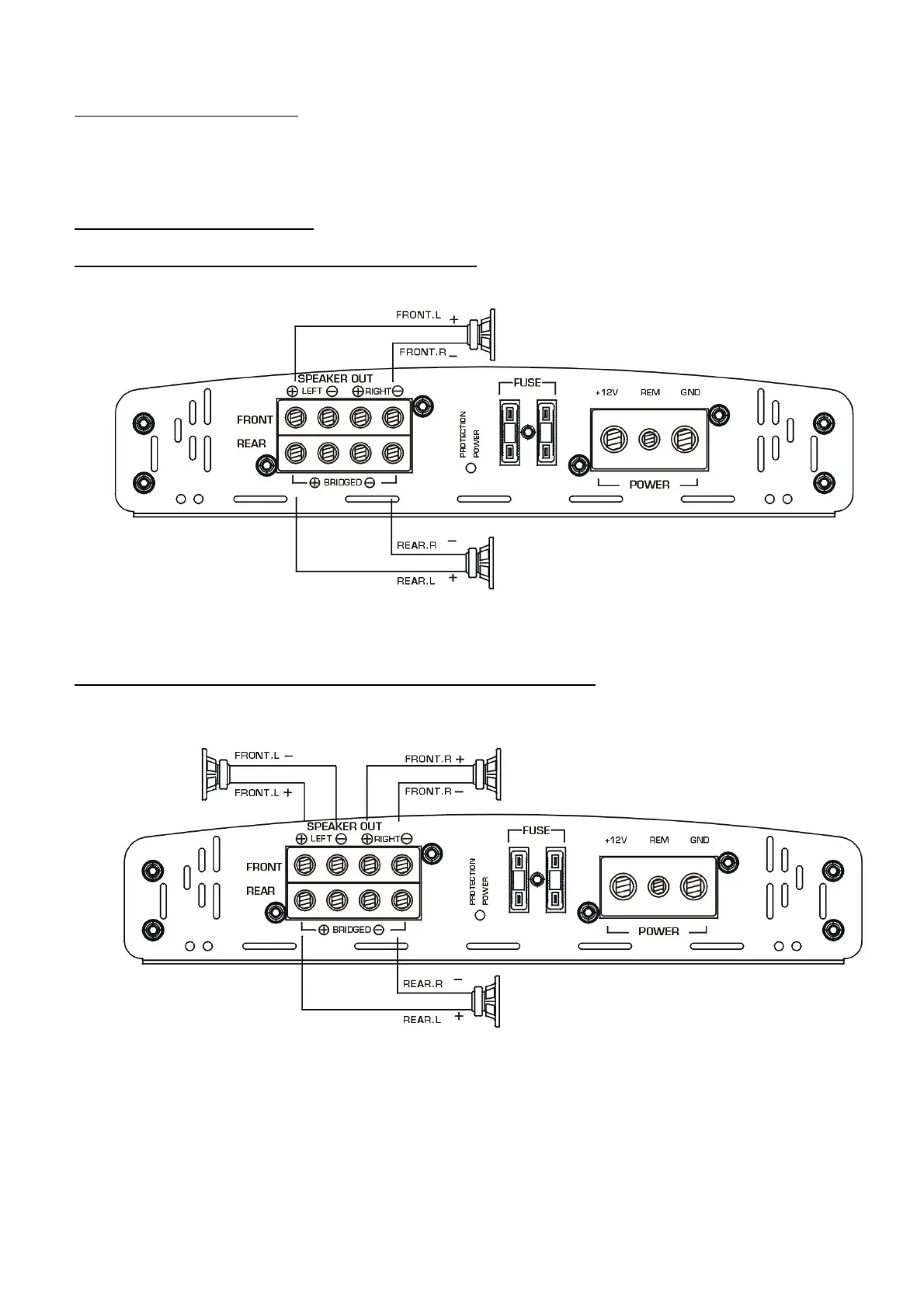 Schließen Sie die beiden Lautsprecher L und R an das FRONT Terminal und den Subwoofer an die gebrückten