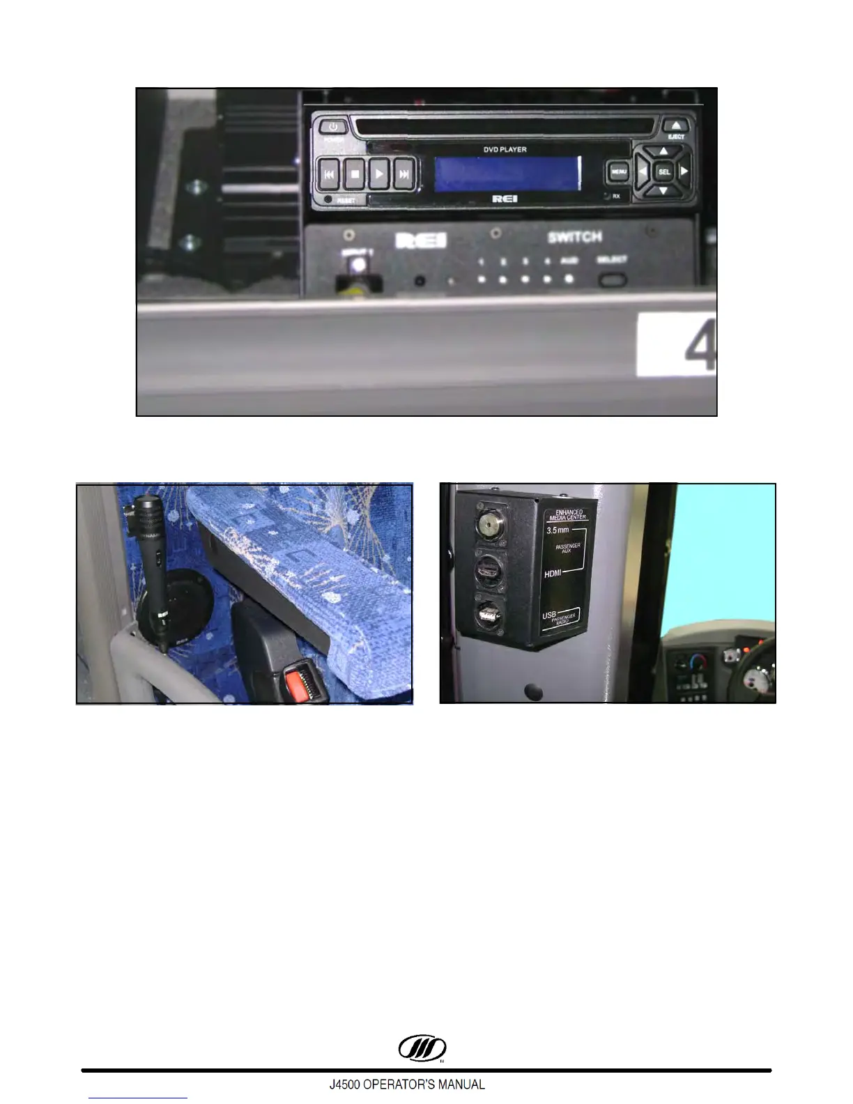 MCi J4500 - REI DVD Player in Roadside, Parcel Rack Compartment #2; Microphone (with Cord) Beside Drivers RH Armrest; Enhanced Media Center