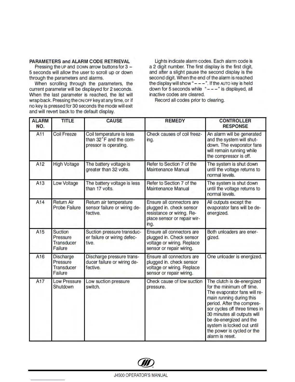 HVAC ALARM CODES