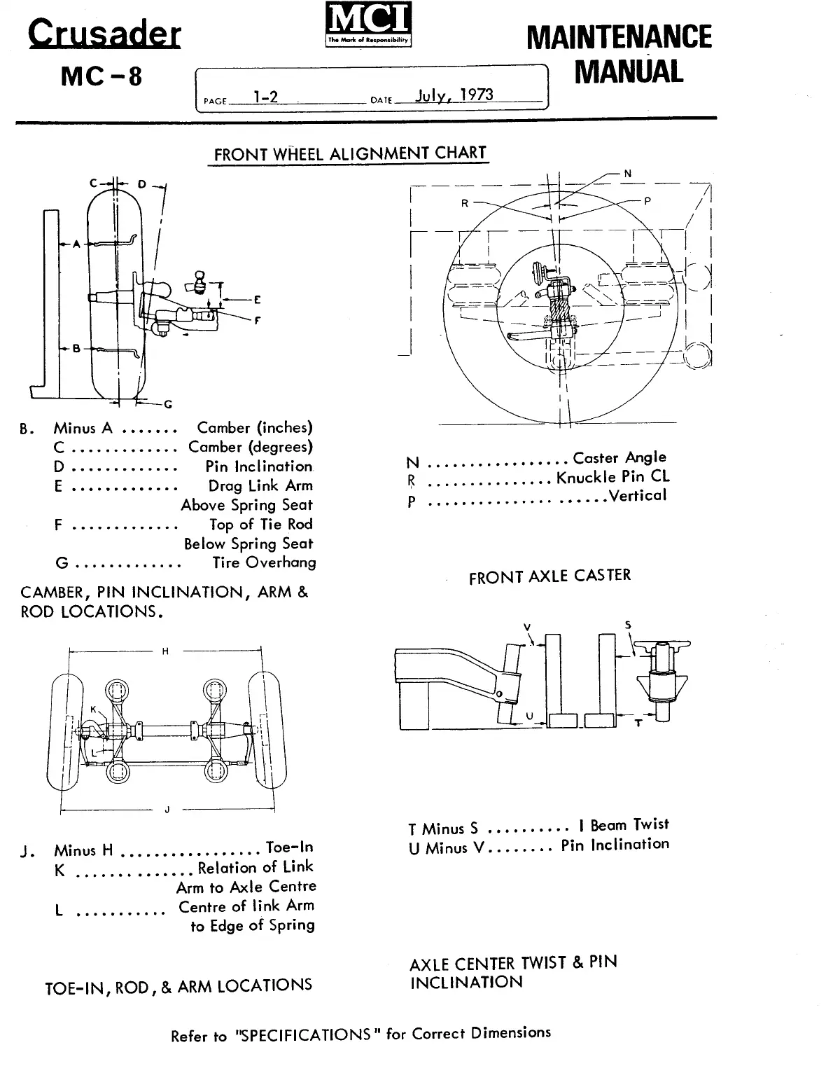 Refer to "SPECIFICATIONS" for Correct Dimensions