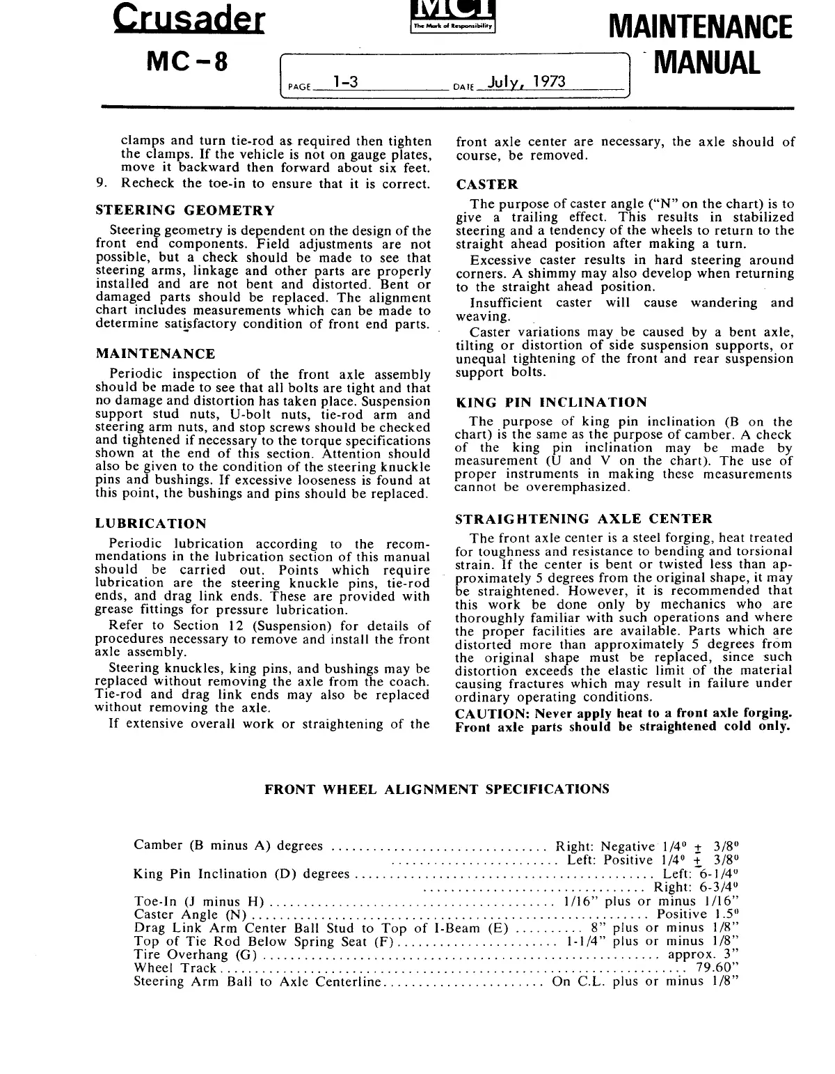 Never apply heat to a front axle forging.