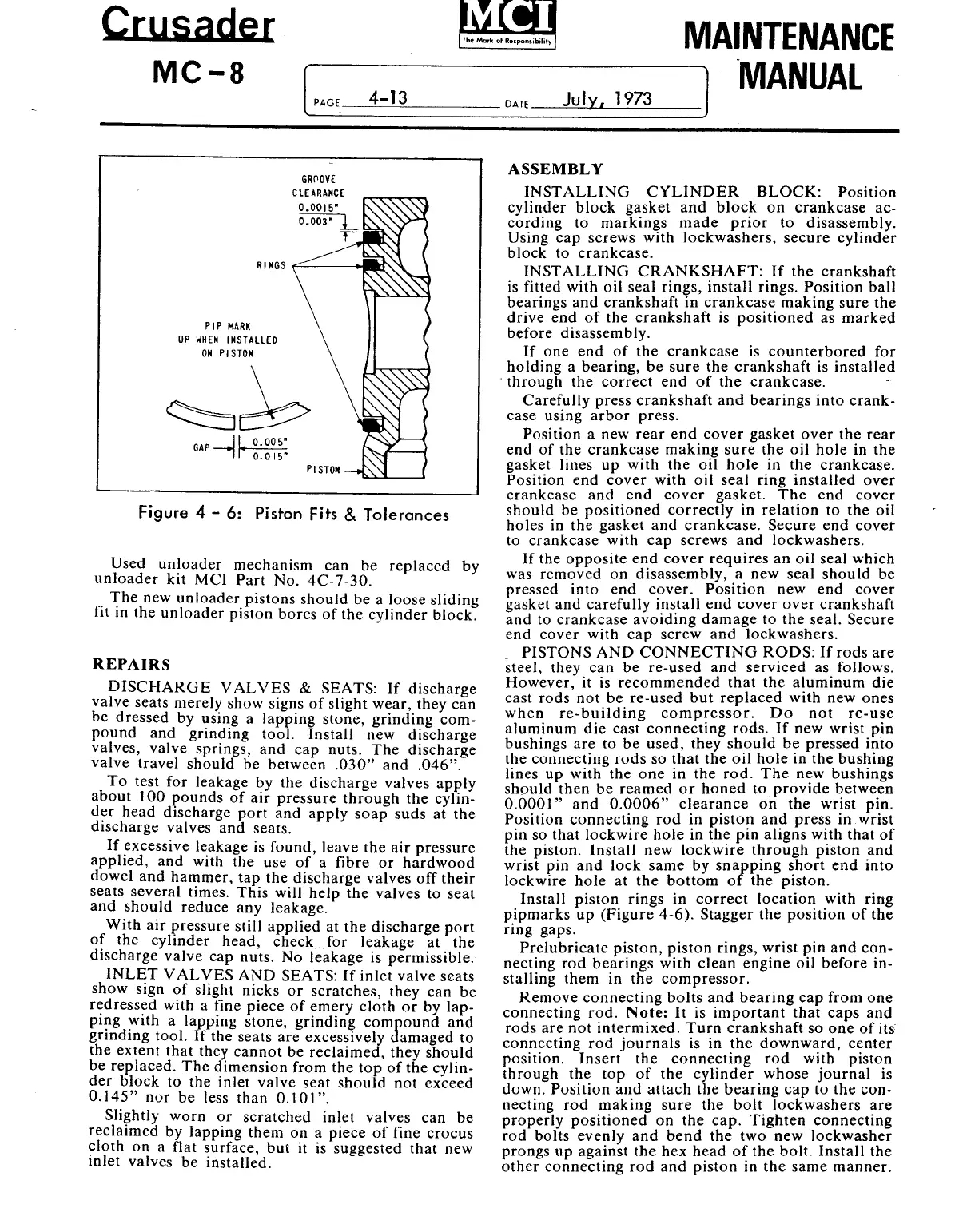 MCi MC8 Crusader - Inst Alling Crankshaft; Pistons and Connecting Rods