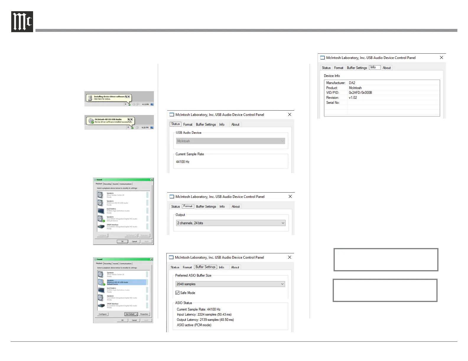 2. The McIntosh-HD USB Audio Control Panel