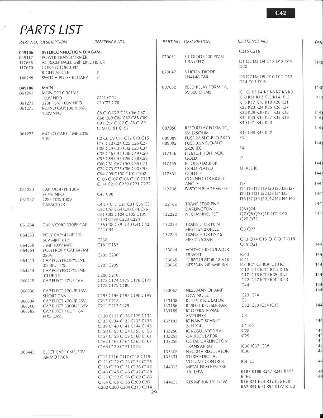 McIntosh C42 - Parts List; Component Identification and Part Numbers