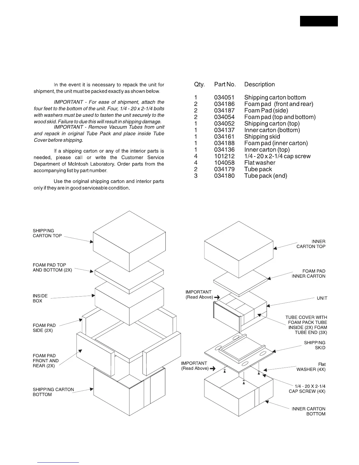 REPACKING INSTRUCTIONS