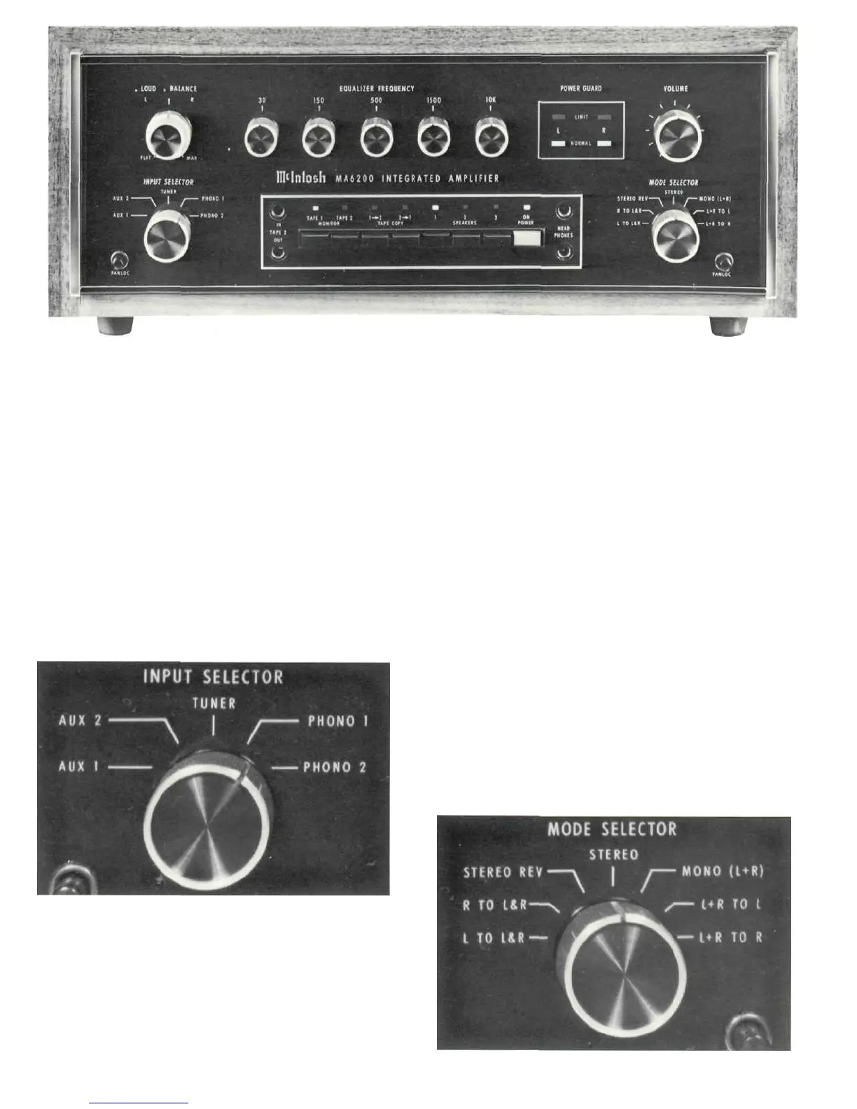 The MODE SELECTOR switch connects the pro-