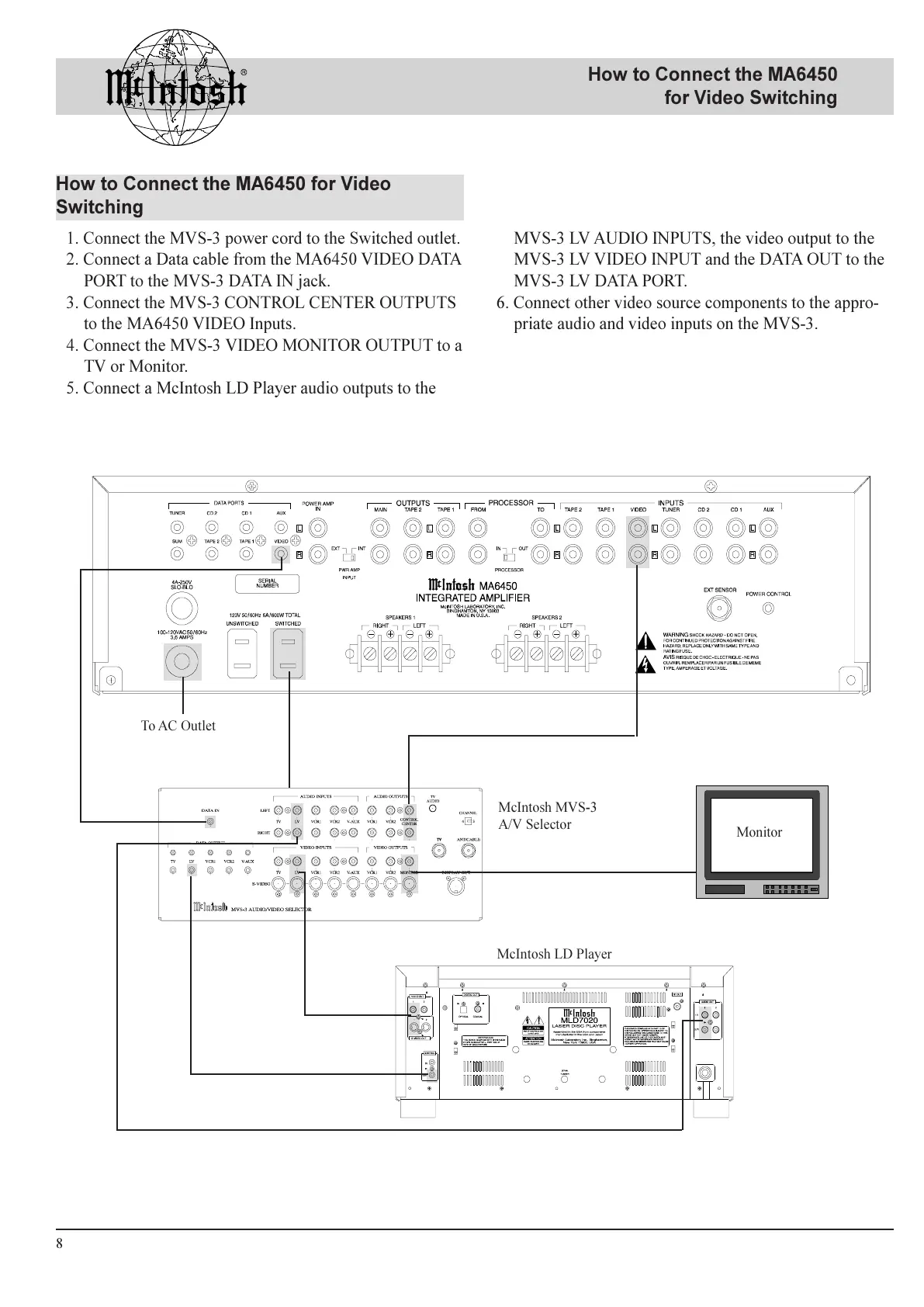 1. Connect the MVS-3 power cord to the Switched outlet.