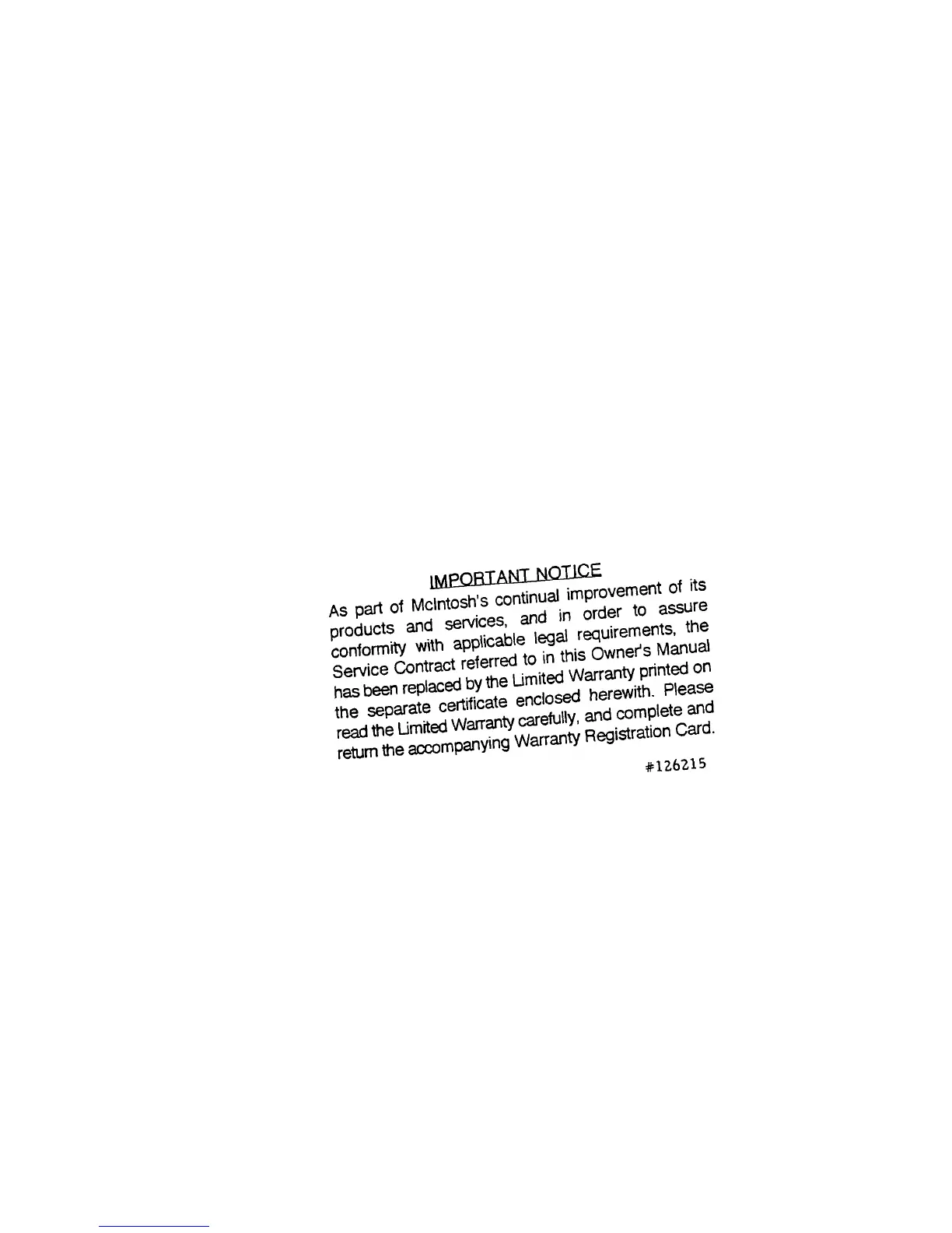 5. Units in operation outside the United States and Canada are not covered by the Mclntosh
