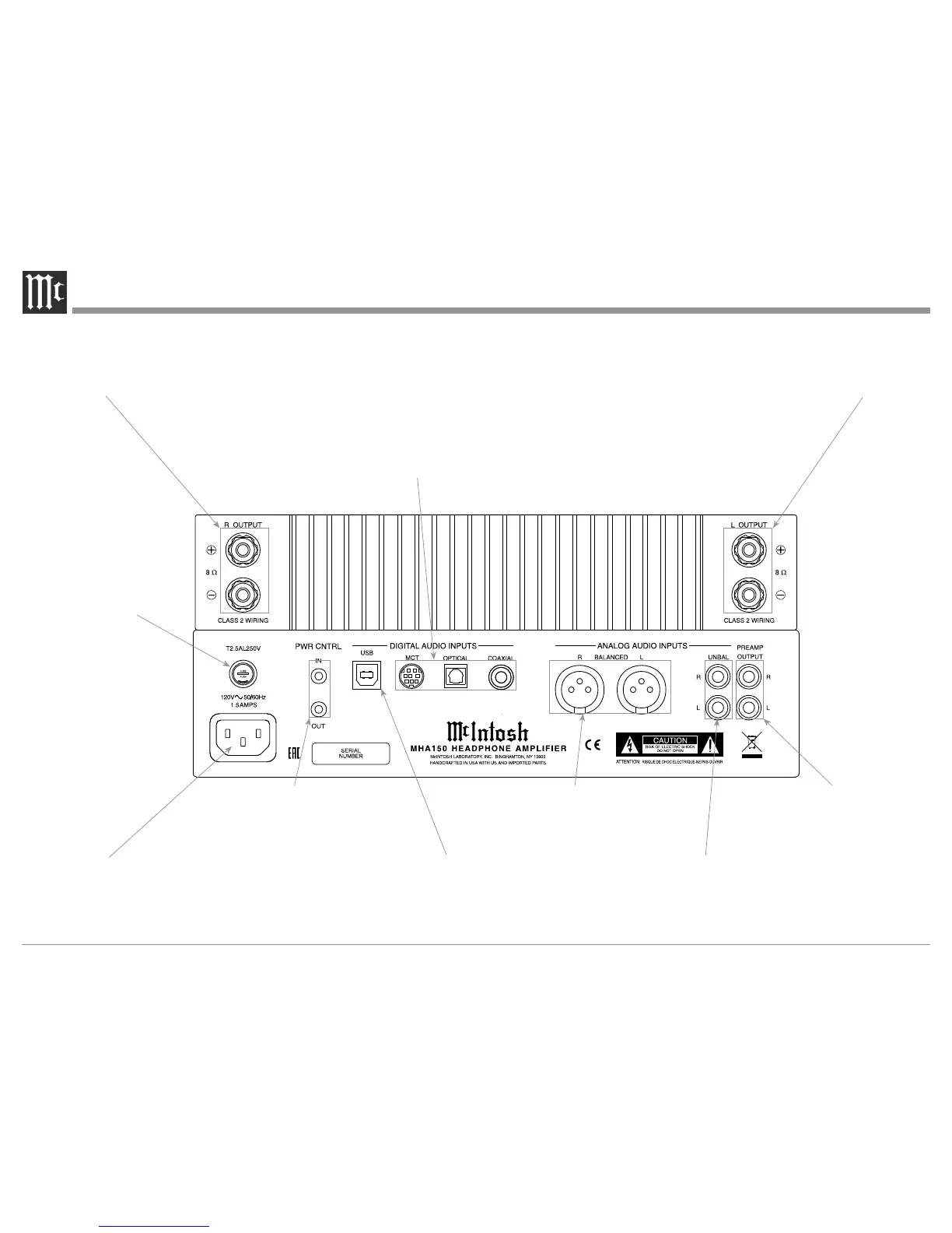 MHA150 Rear Panel Connections