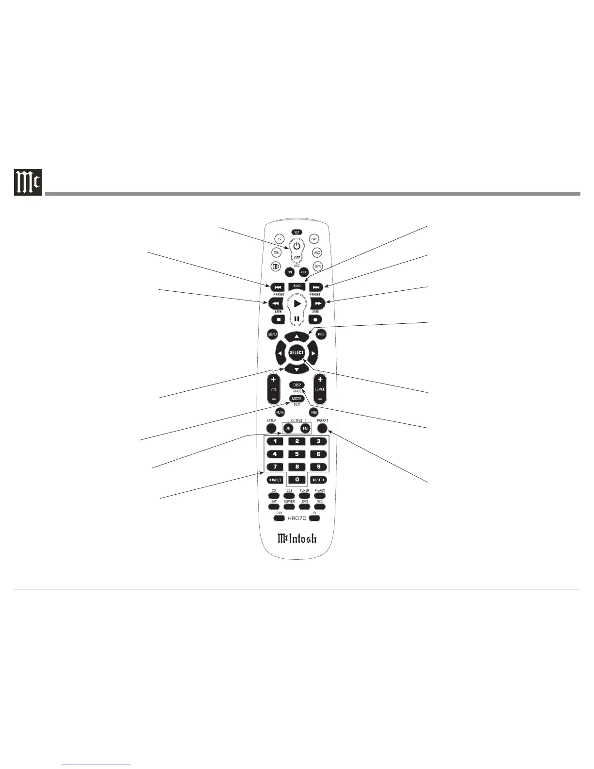 Note: Push-buttons whose function is not identified above are for use with other McIntosh Products.