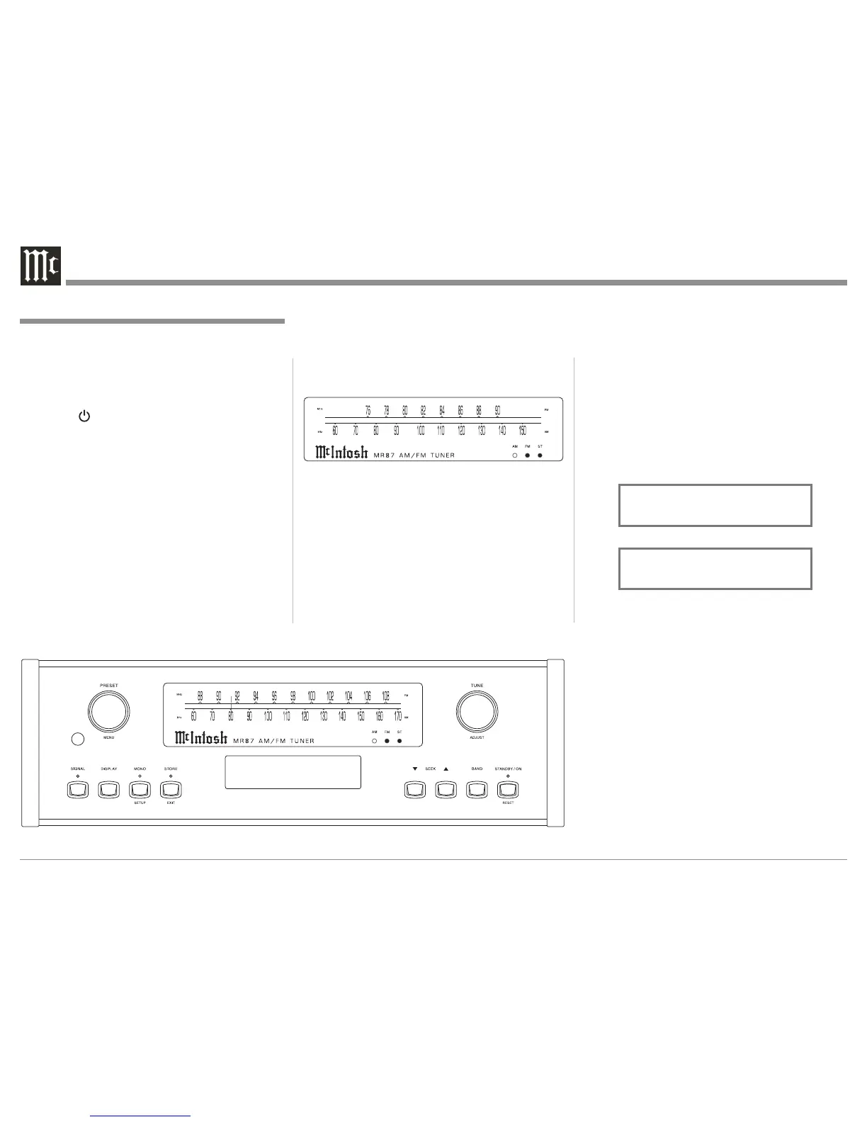 Note: The first time the MR87 is switched On the Tuner