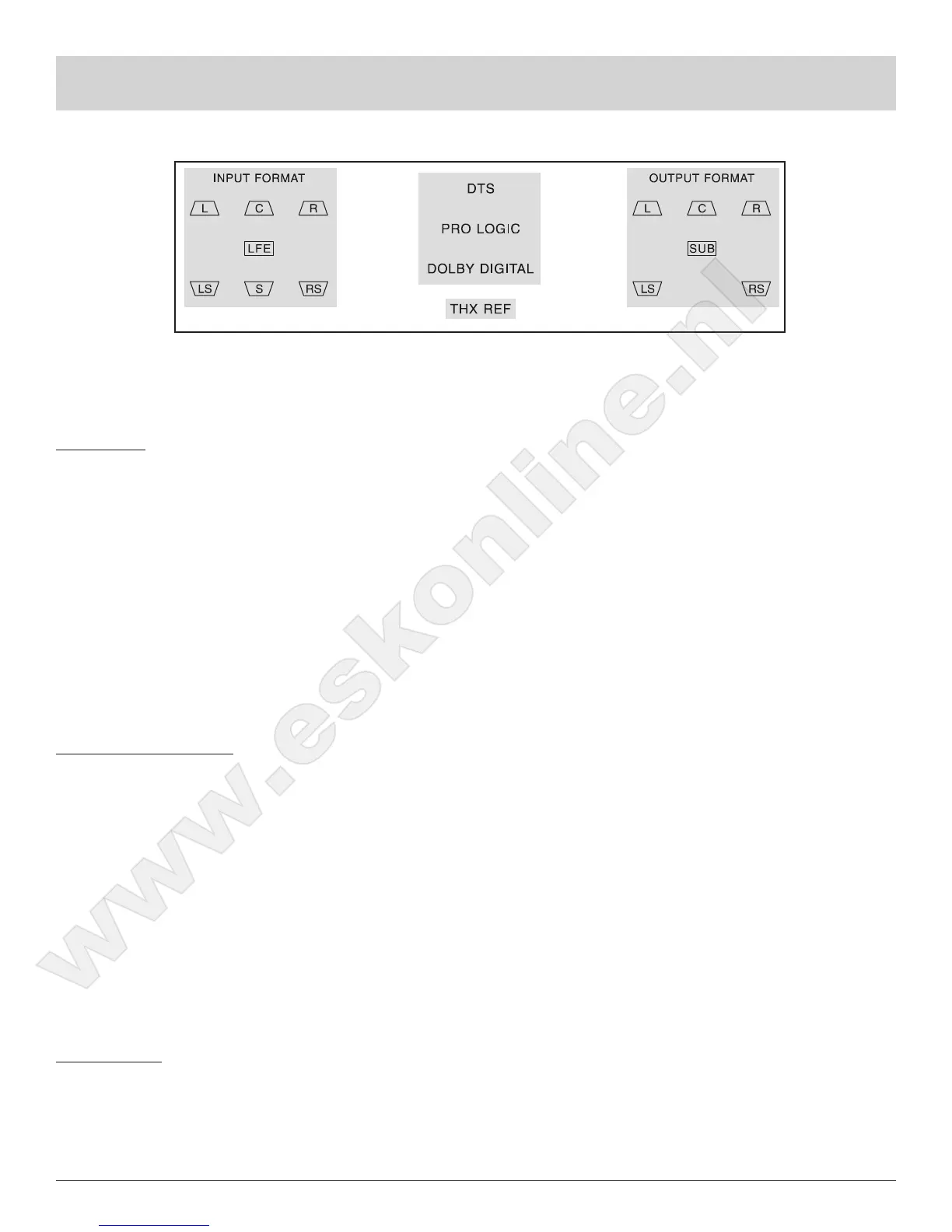 front panel INPUT FORMAT LEDs L, C, R, LFE,