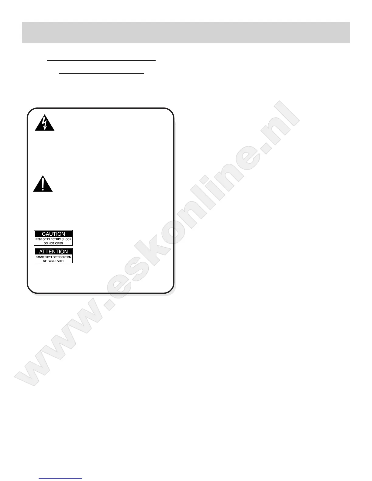 Attention: pour pevenir les chocs elecriques pas