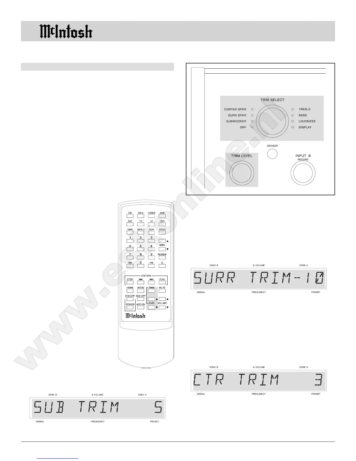 Remote Control. Level, Bass, Treble and Loudness Trim