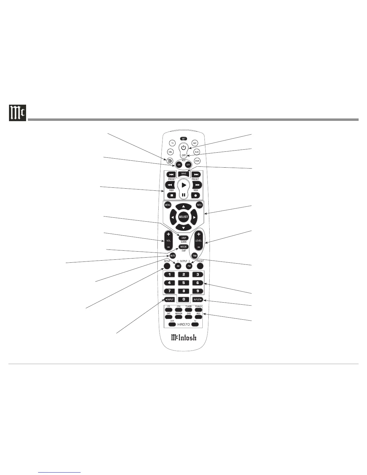 Note: Push-buttons whose function is not identified above are for use with other McIntosh Products.