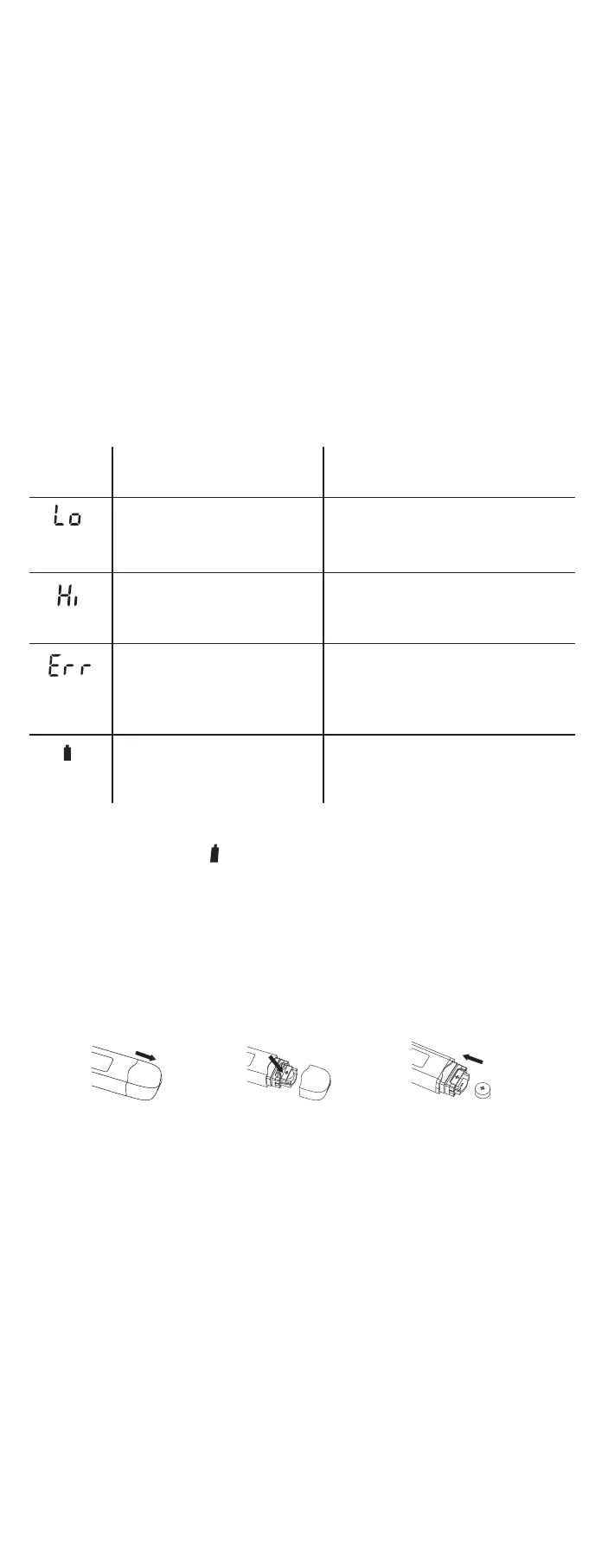 1. Replace battery when “ ” appears in the lower right corner of LCD display.