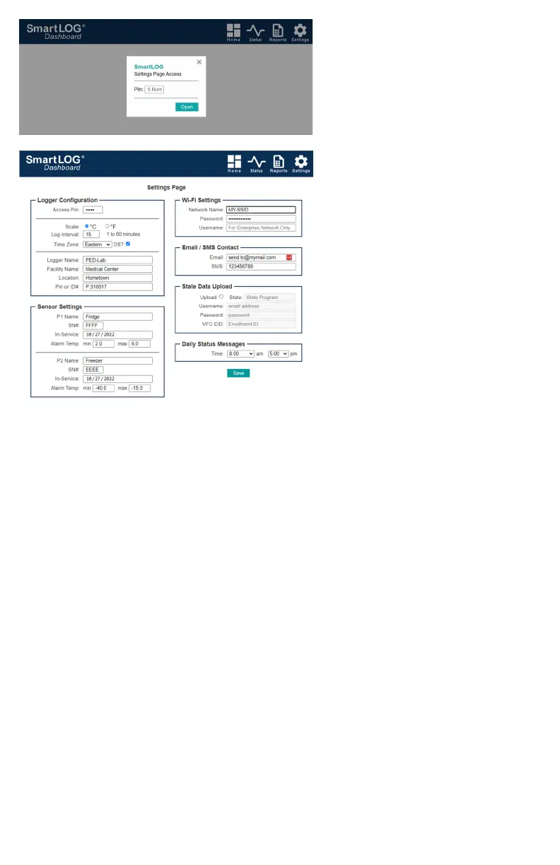 ambient room temperature, humidity and SmartLOG battery state. These messages will be displayed in Reports
