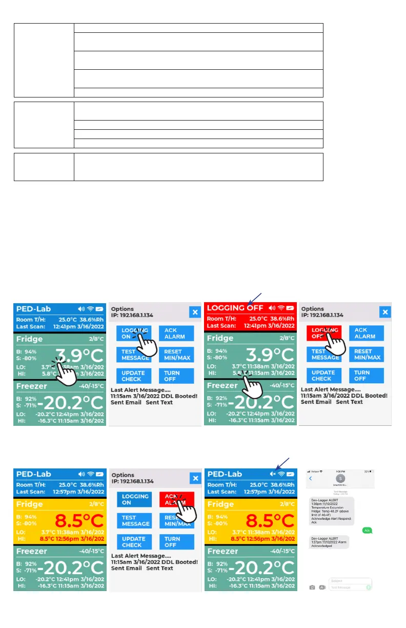LOGGING BUTTON: When set to OFF, data recording will stop and alerts will be disabled from being sent