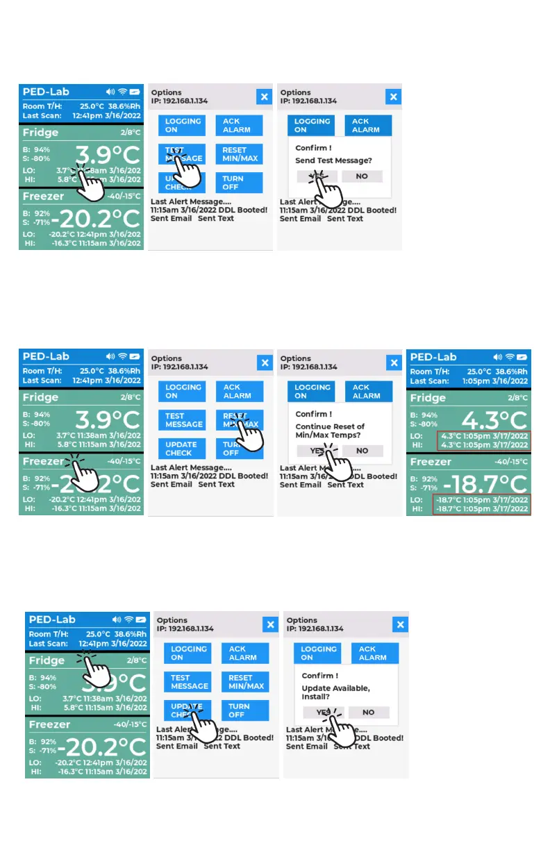 2. Tap YES in confirm pop-up window to reset values. Wait for button to transition as email/SMS alerts are being sent