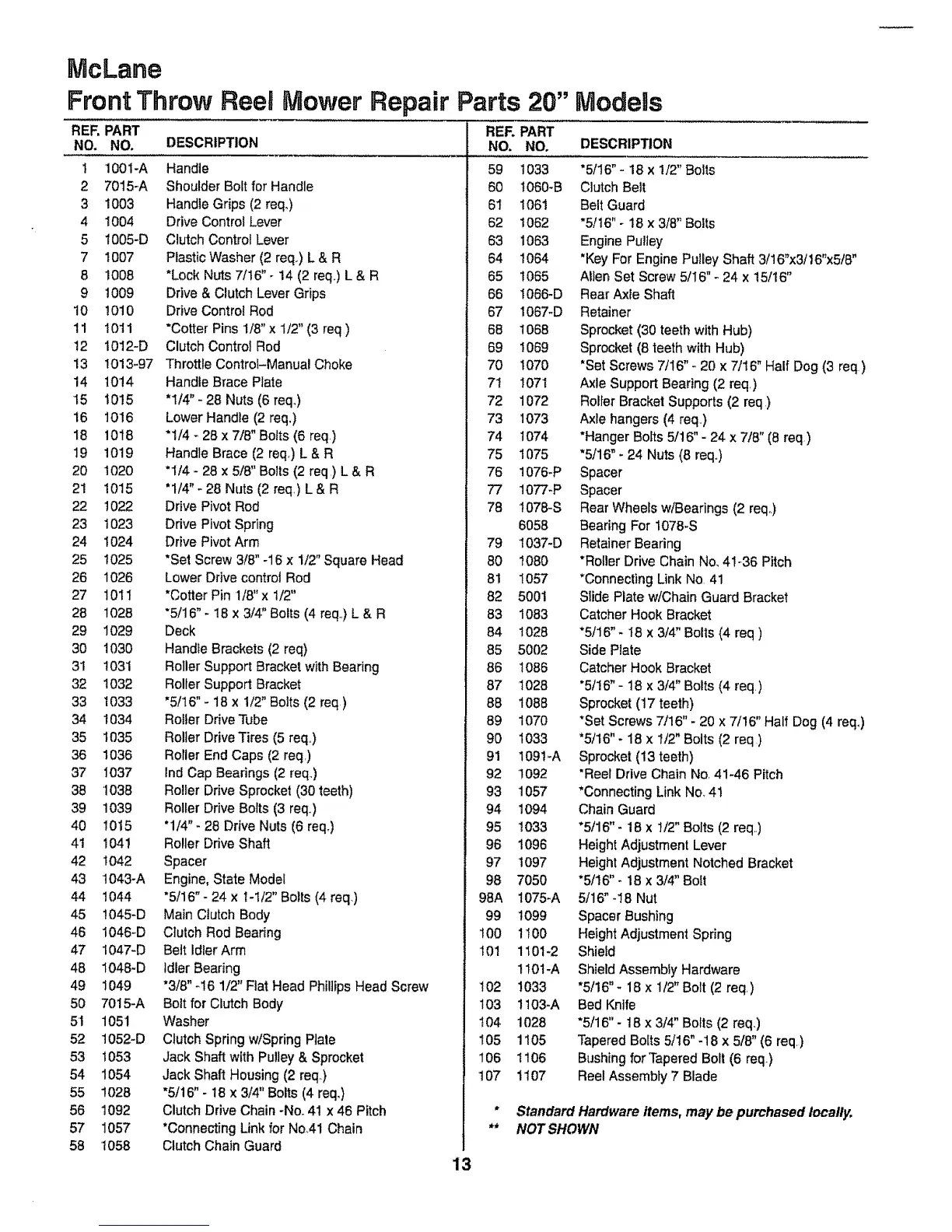 Front Throw ReeMMower Repair Parts 20"