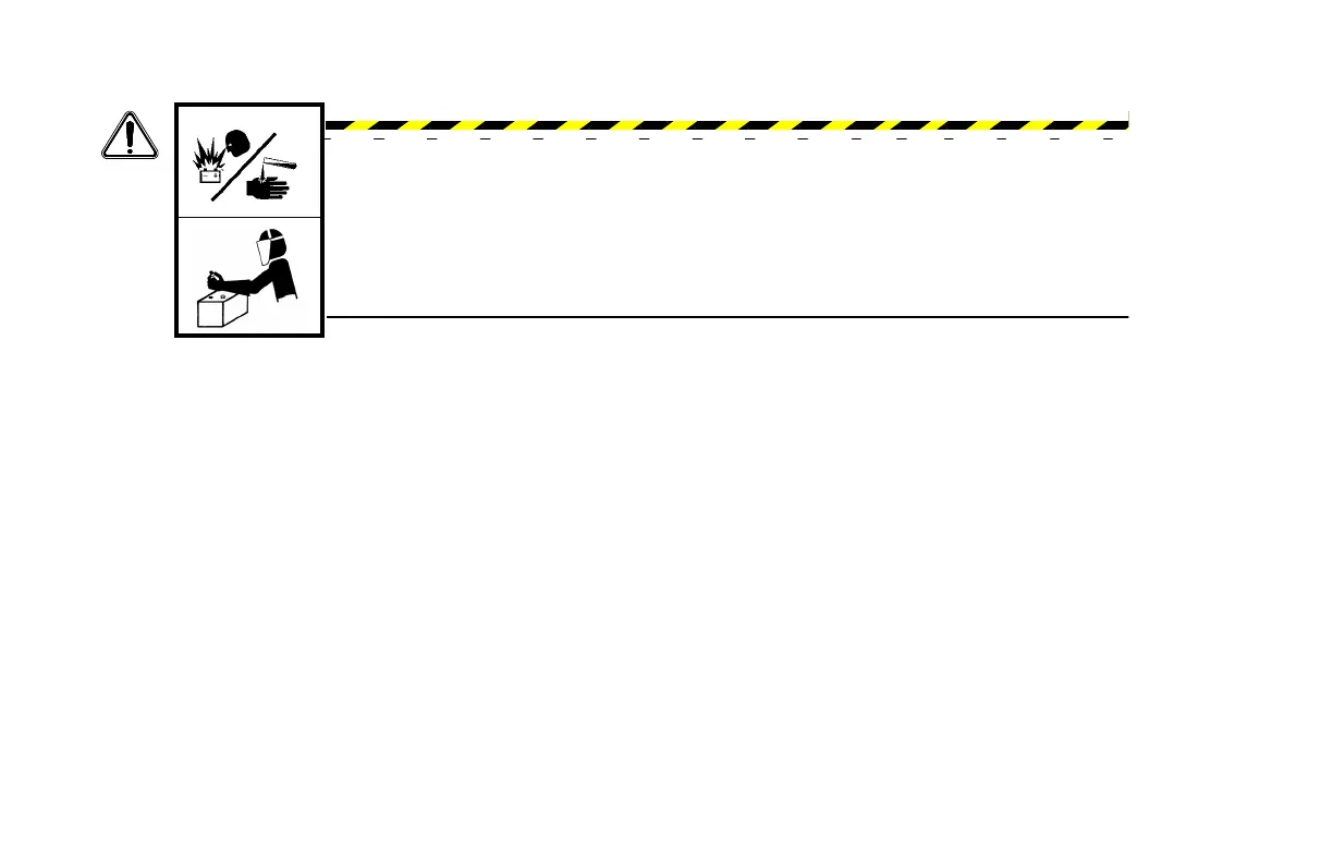 away from battery. Battery explosion can blind. Acid can blind and burn. Tools and