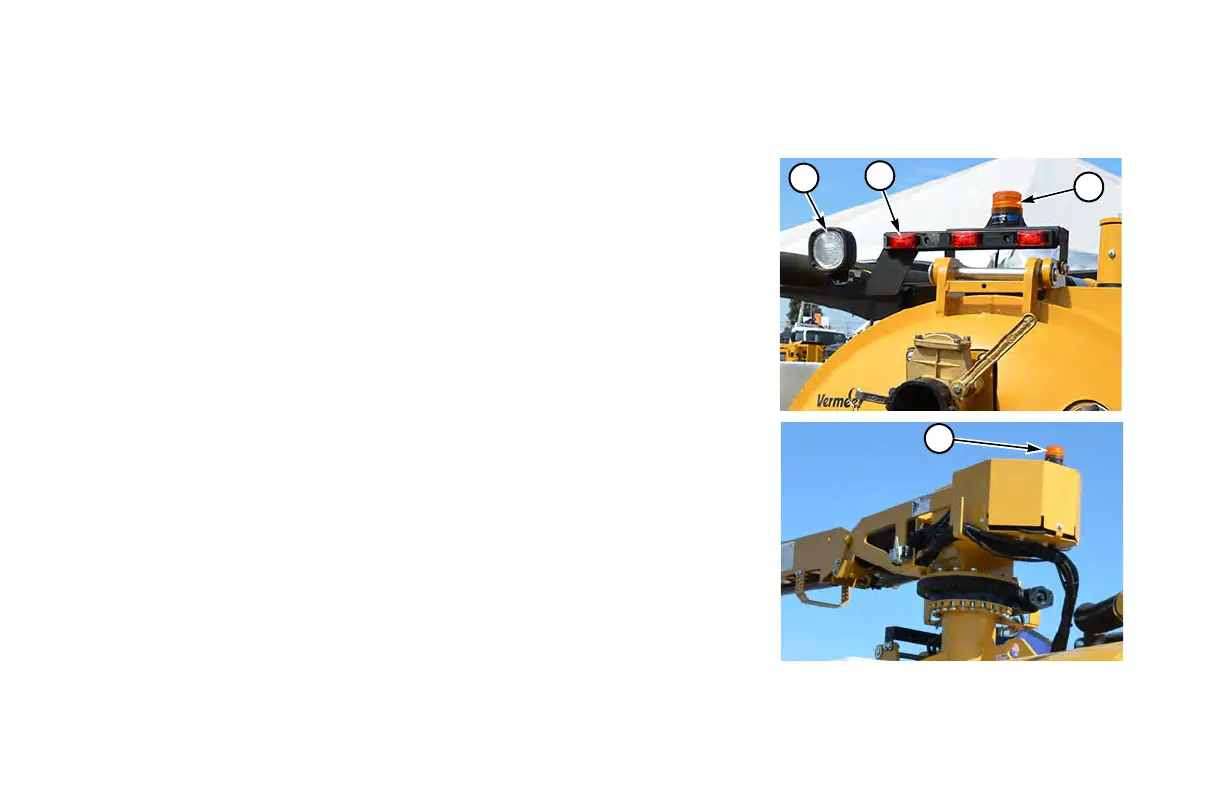 Machine is equipped with a standard amber warning beacon. Optional red marker lights and work light, all