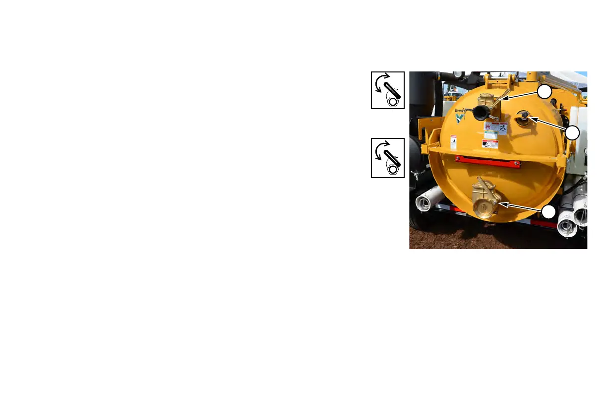 Rotate clockwise . . . . . . . . . . . . open to drain liquid from spoil tank