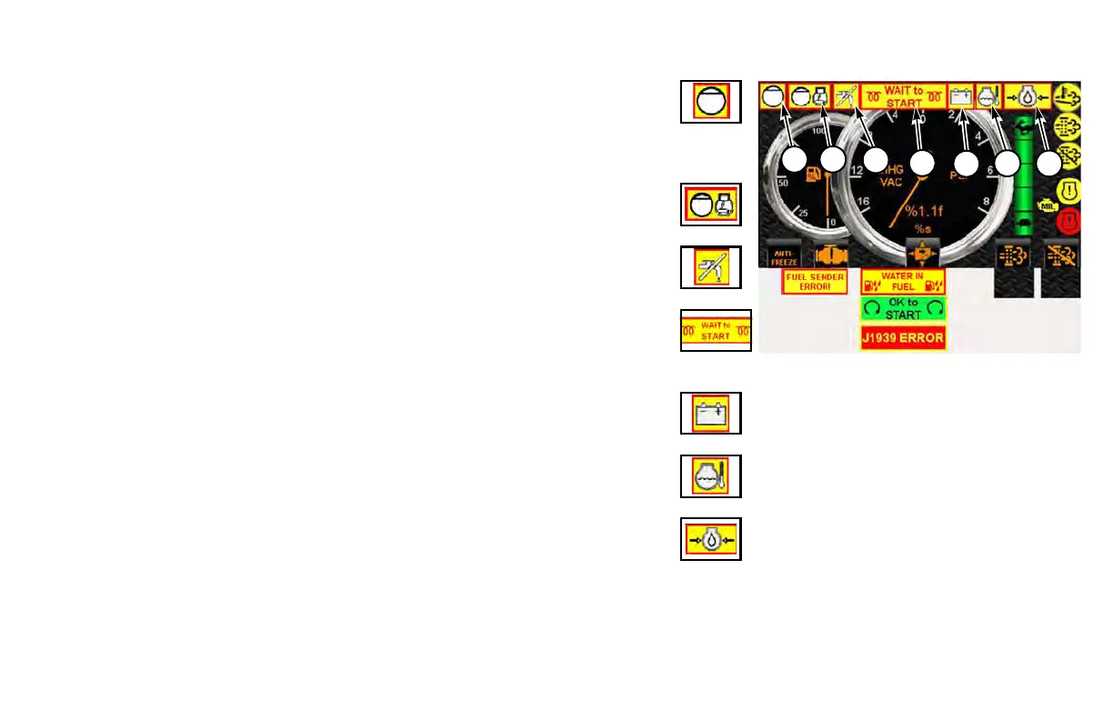 When lit, indicates that engine glow plugs are heating. Wait to start