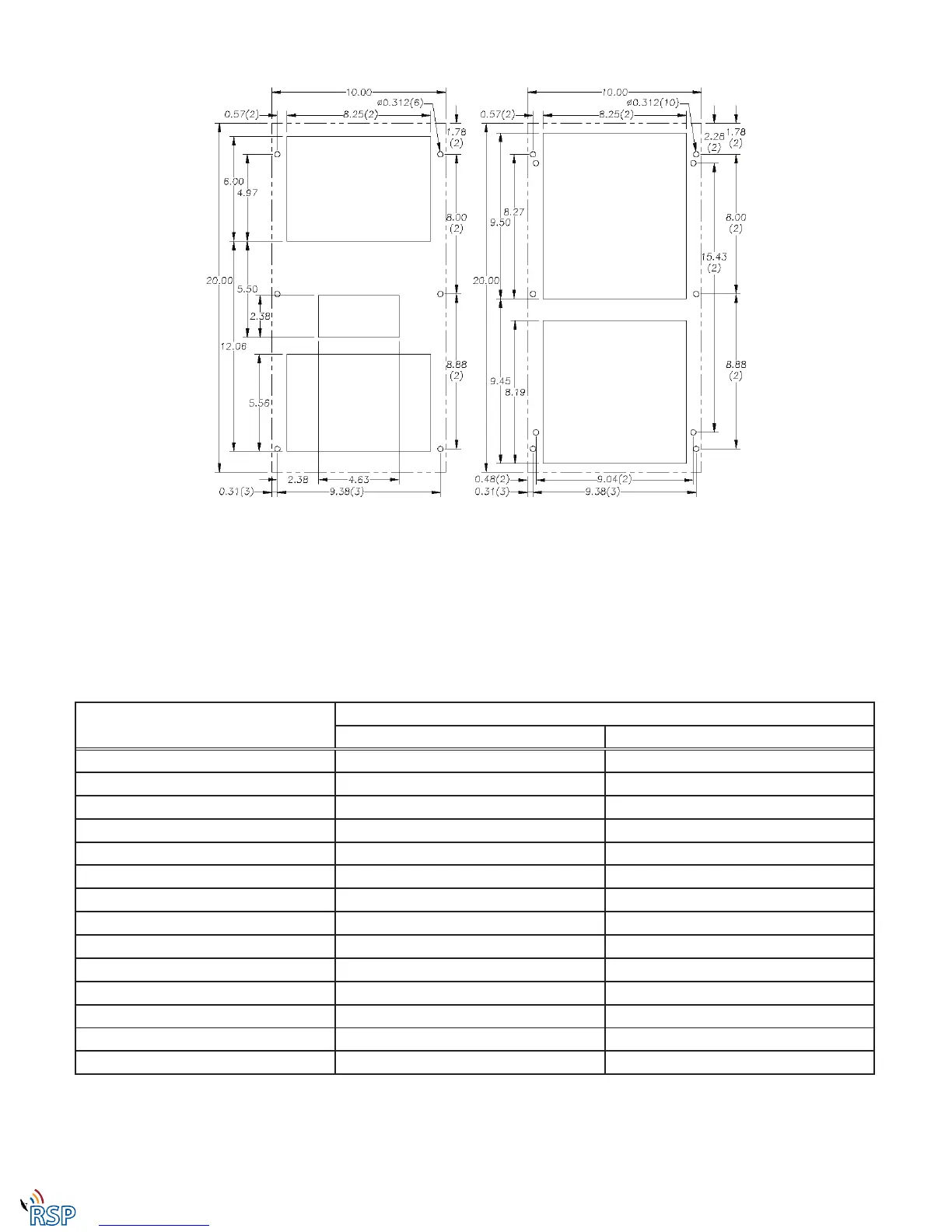 Mounting Cutout Dimensions