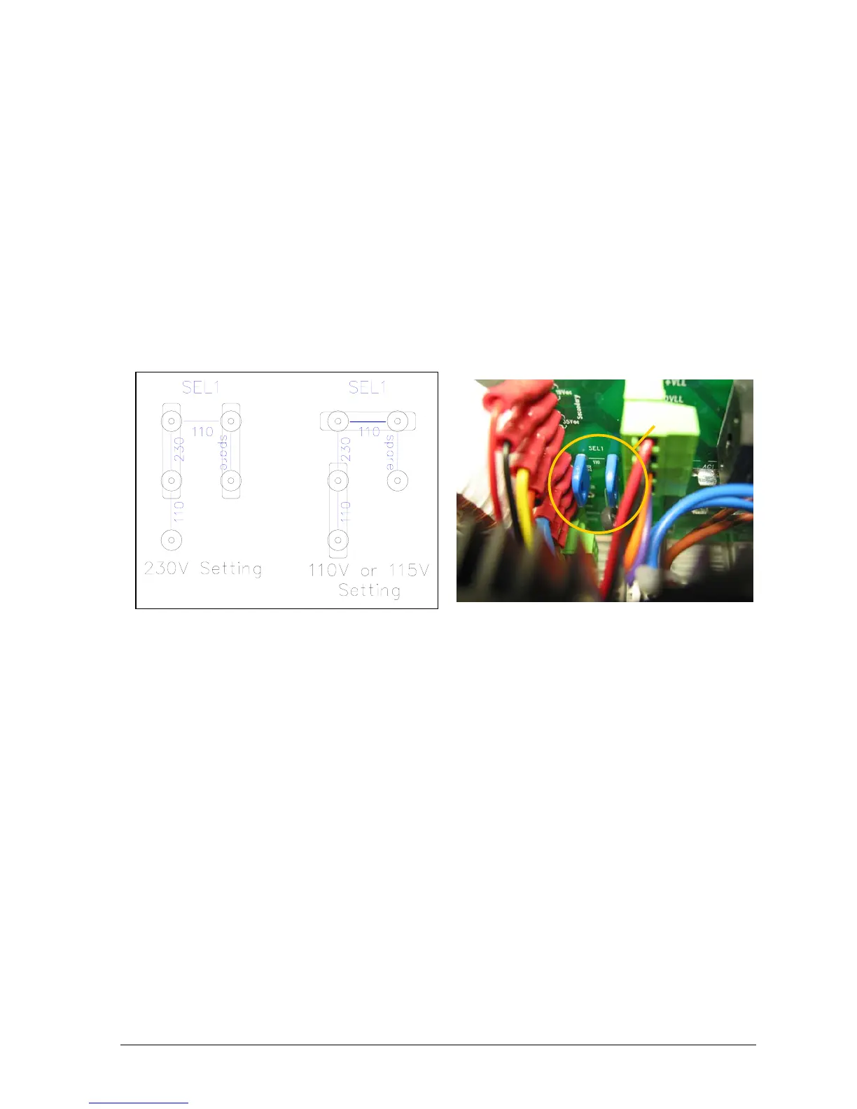 The mains voltage may be changed from 230V to 115V by changing the position of the
