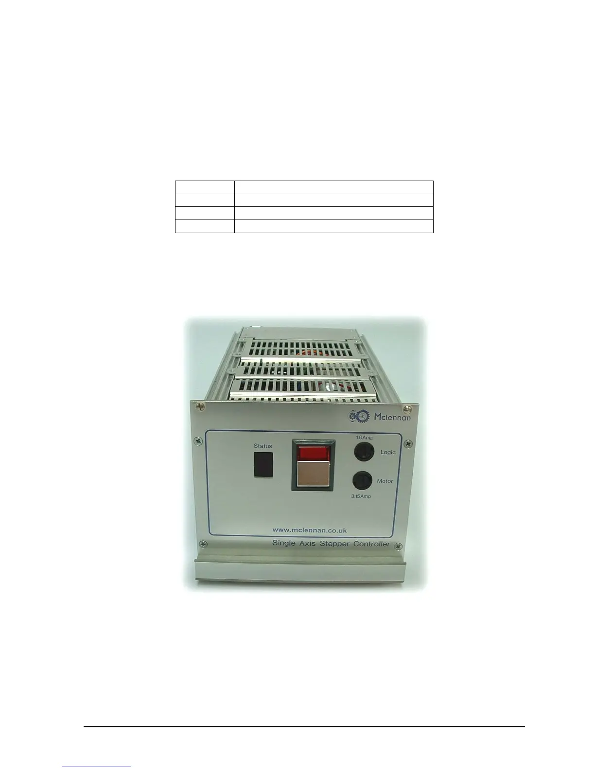 The system is a single axis stepper motor control and drive rack. Motor motion is