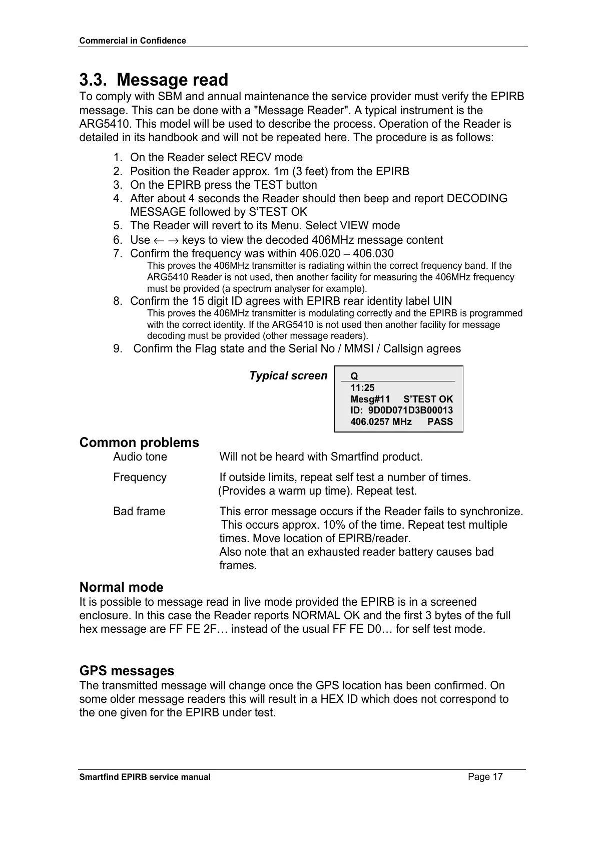 It is possible to message read in live mode provided the EPIRB is in a screened