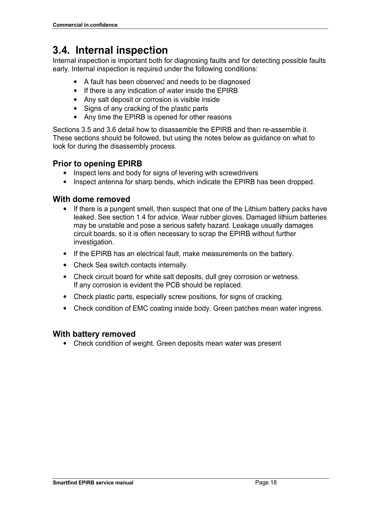 Sections 3.5 and 3.6 detail how to disassemble the EPIRB and then re-assemble it.