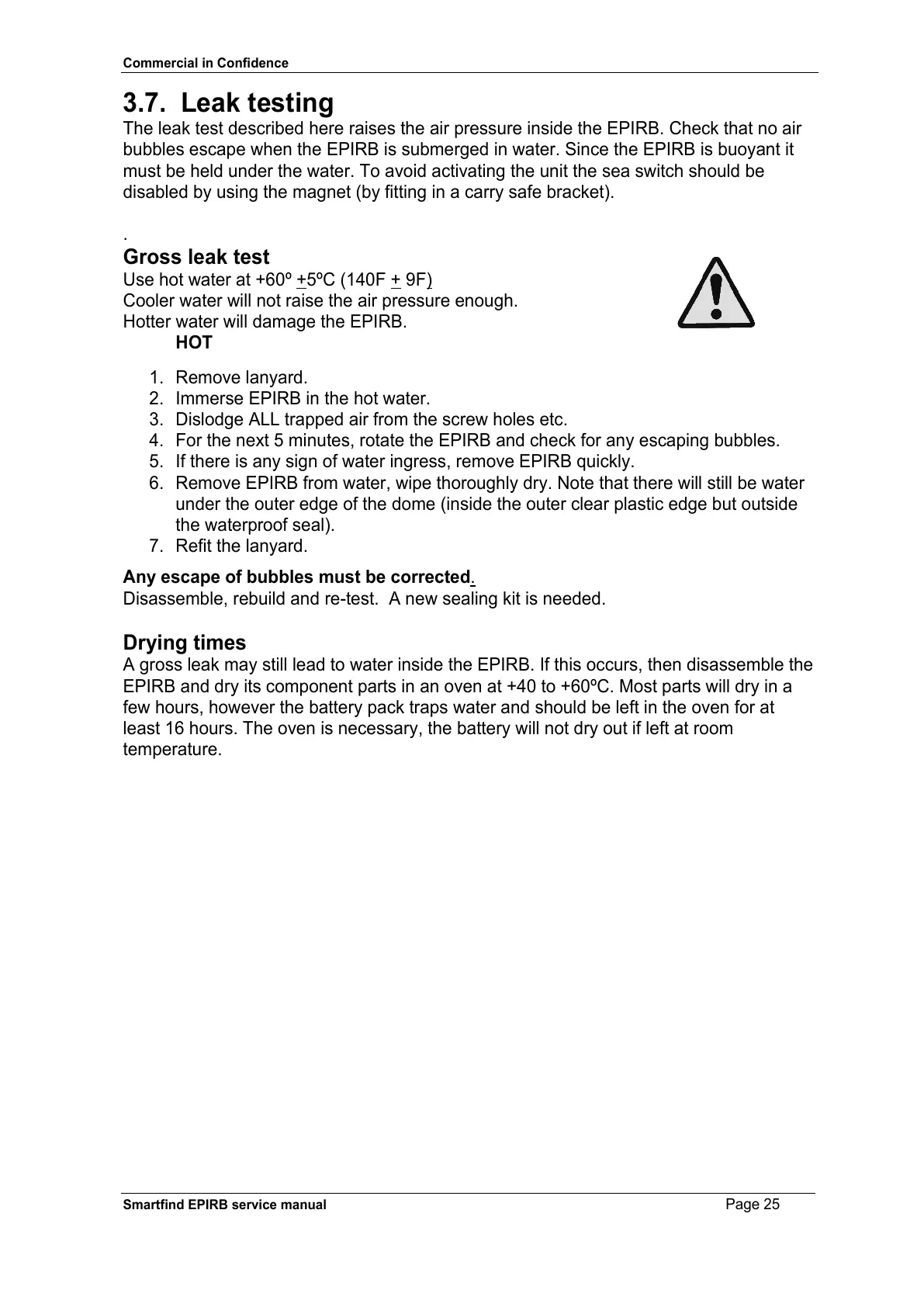 EPIRB and dry its component parts in an oven at +40 to +60ºC. Most parts will dry in a