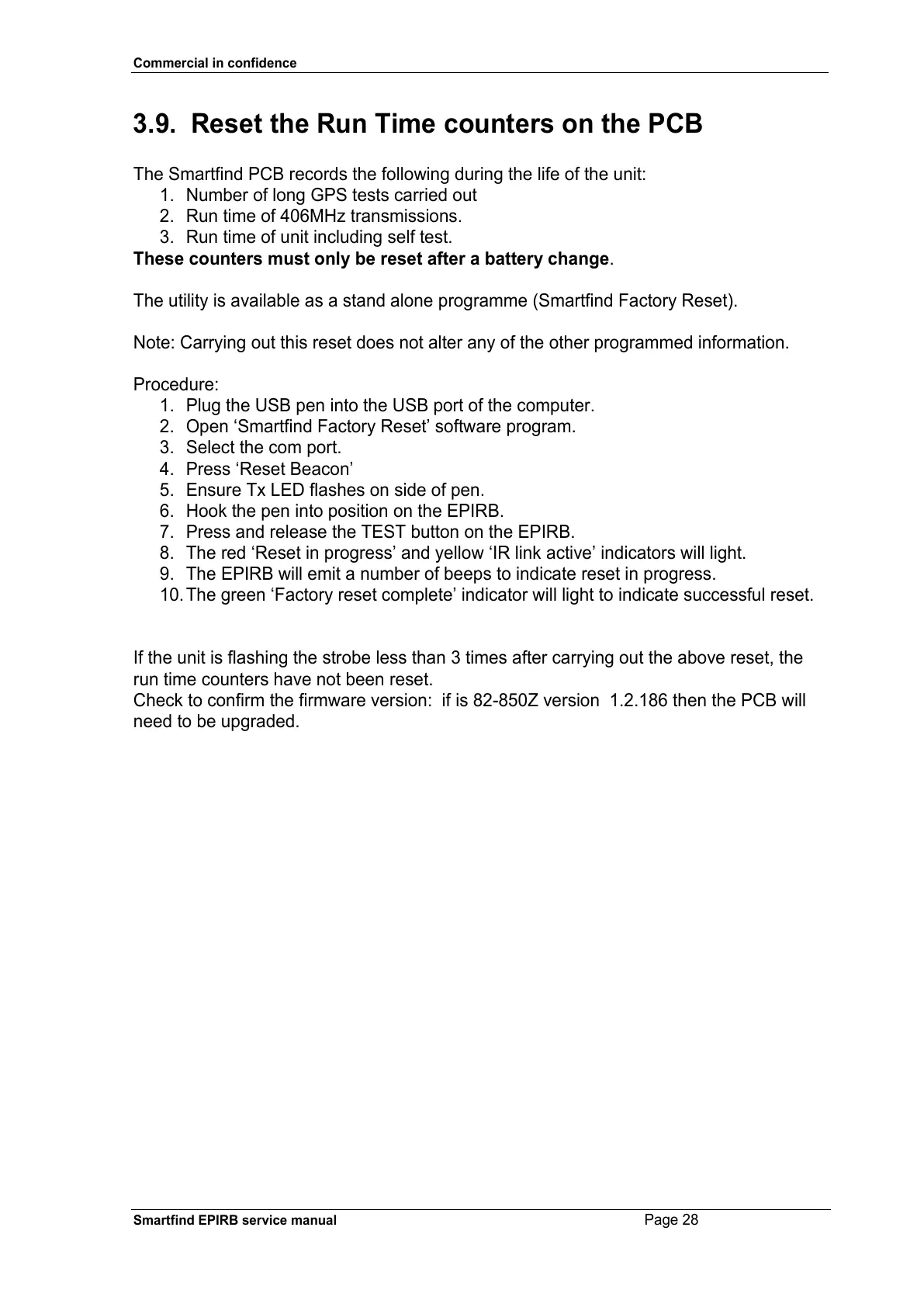 If the unit is flashing the strobe less than 3 times after carrying out the above reset, the