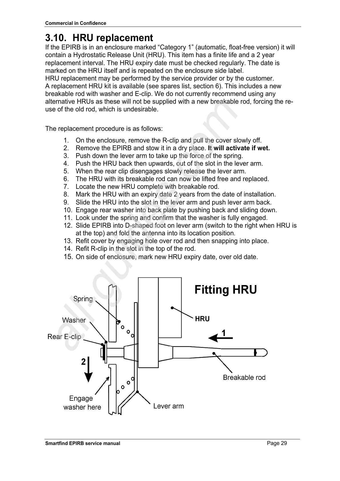 contain a Hydrostatic Release Unit (HRU). This item has a finite life and a 2 year