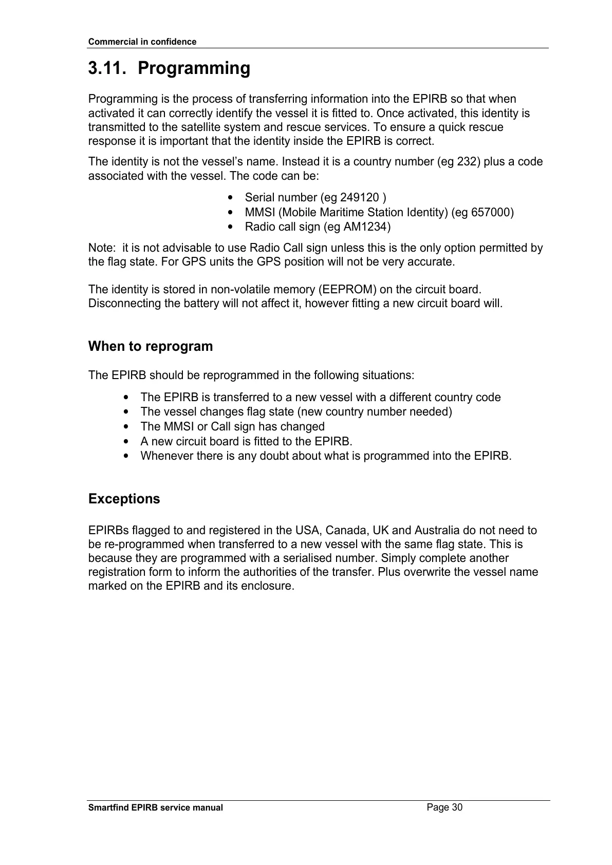 • Whenever there is any doubt about what is programmed into the EPIRB.