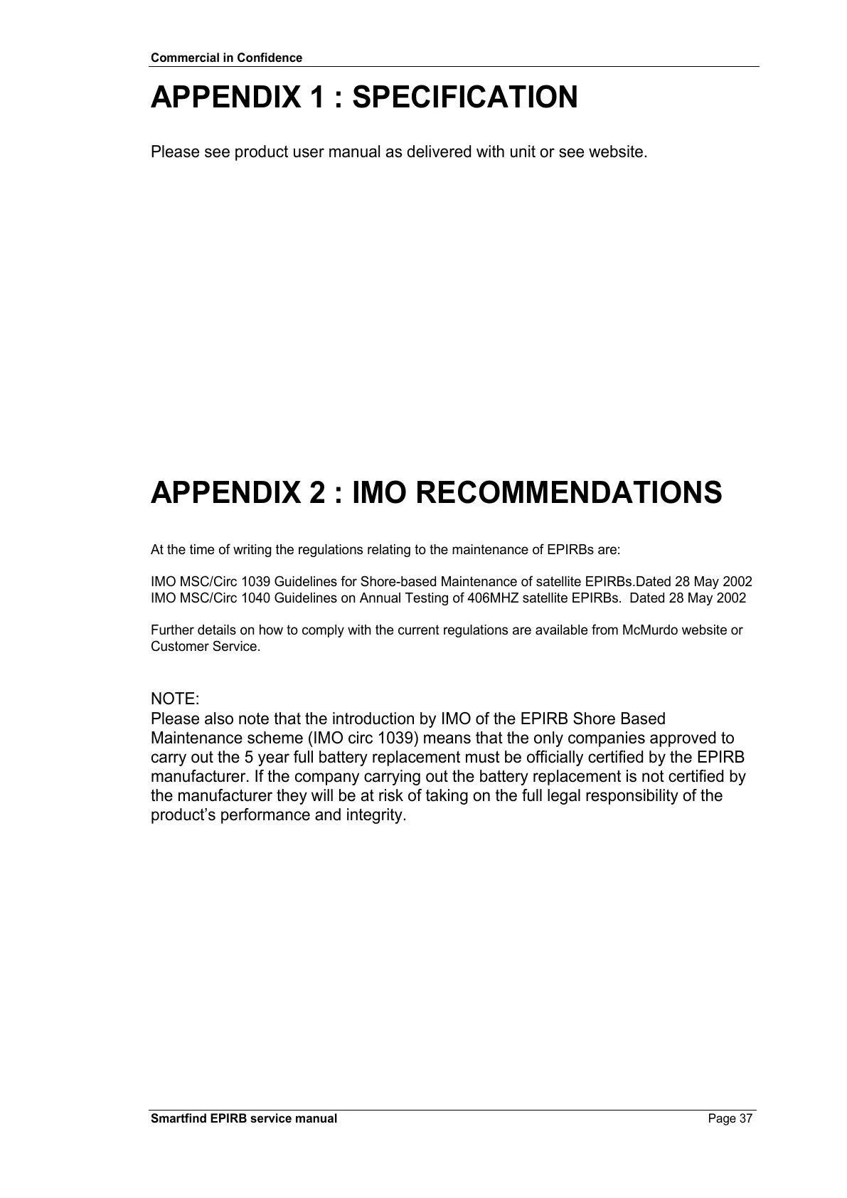 IMO MSC/Circ 1039 Guidelines for Shore-based Maintenance of satellite EPIRBs.Dated 28 May 2002